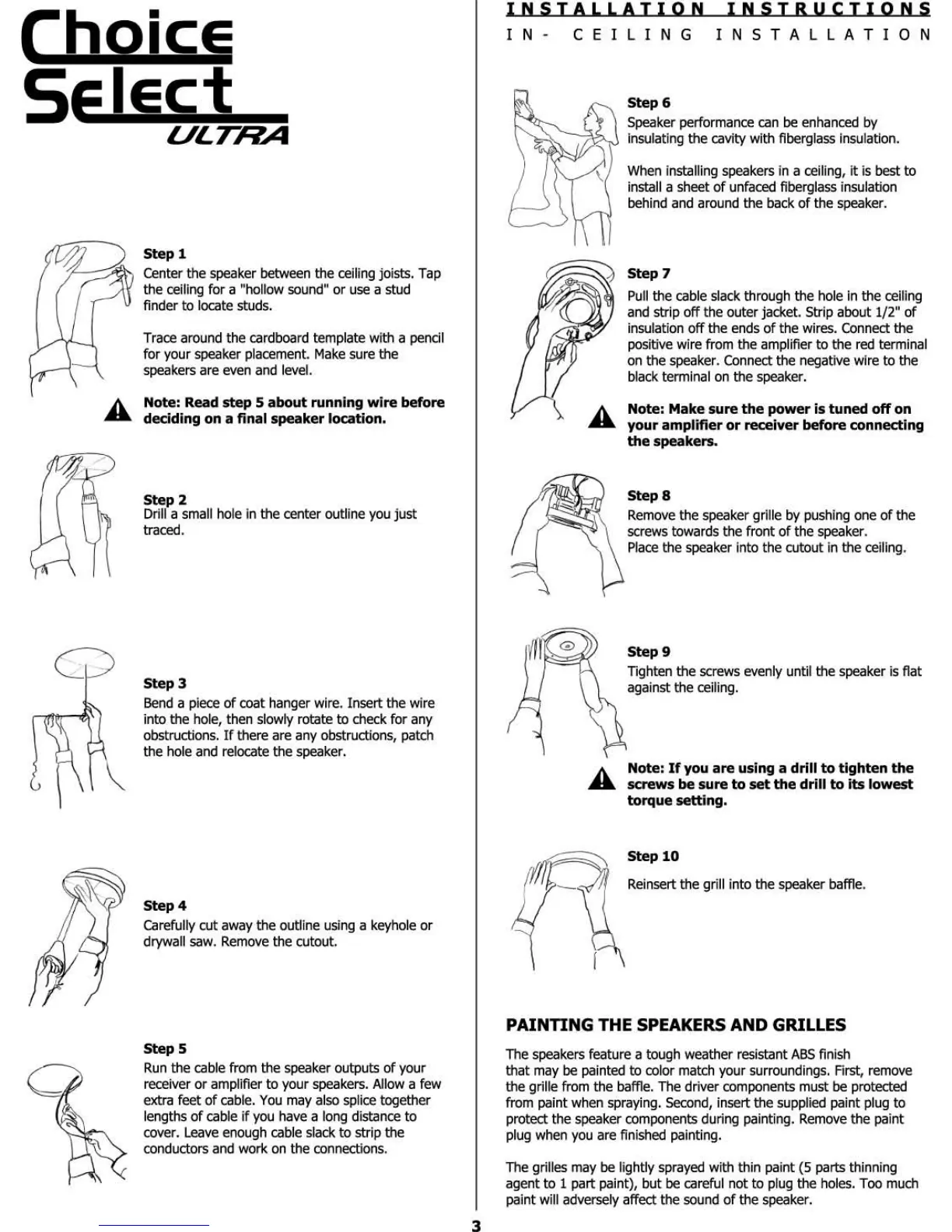 Choice Select ultra - In-Ceiling Installation Process; Step 1: Locate Speaker Position; Step 7: Connect Speaker Wire; Step 8: Place Speaker in Ceiling