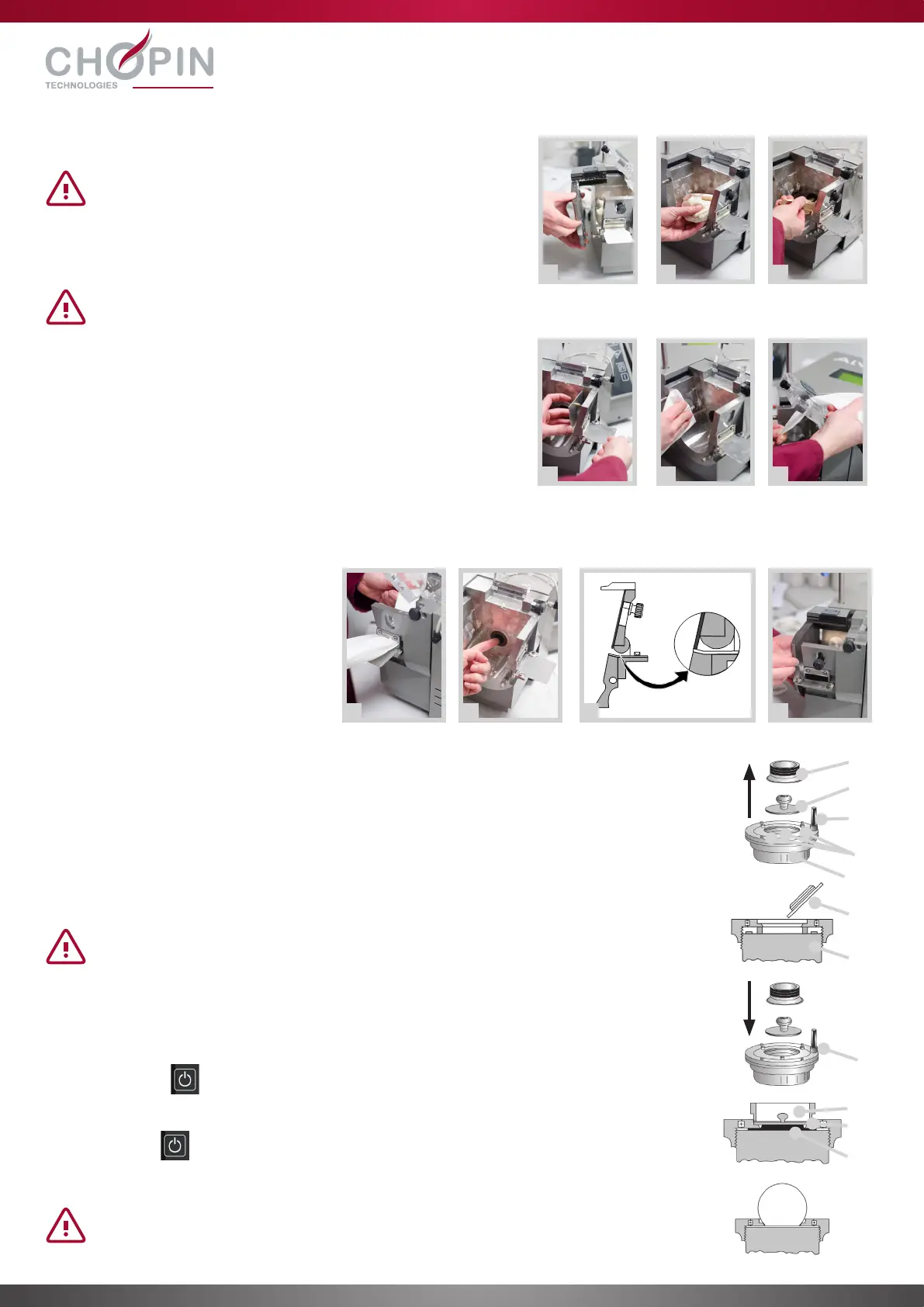2. Unscrew the upper plate (e) using the handle (c) and elevate it until it reaches the level of the