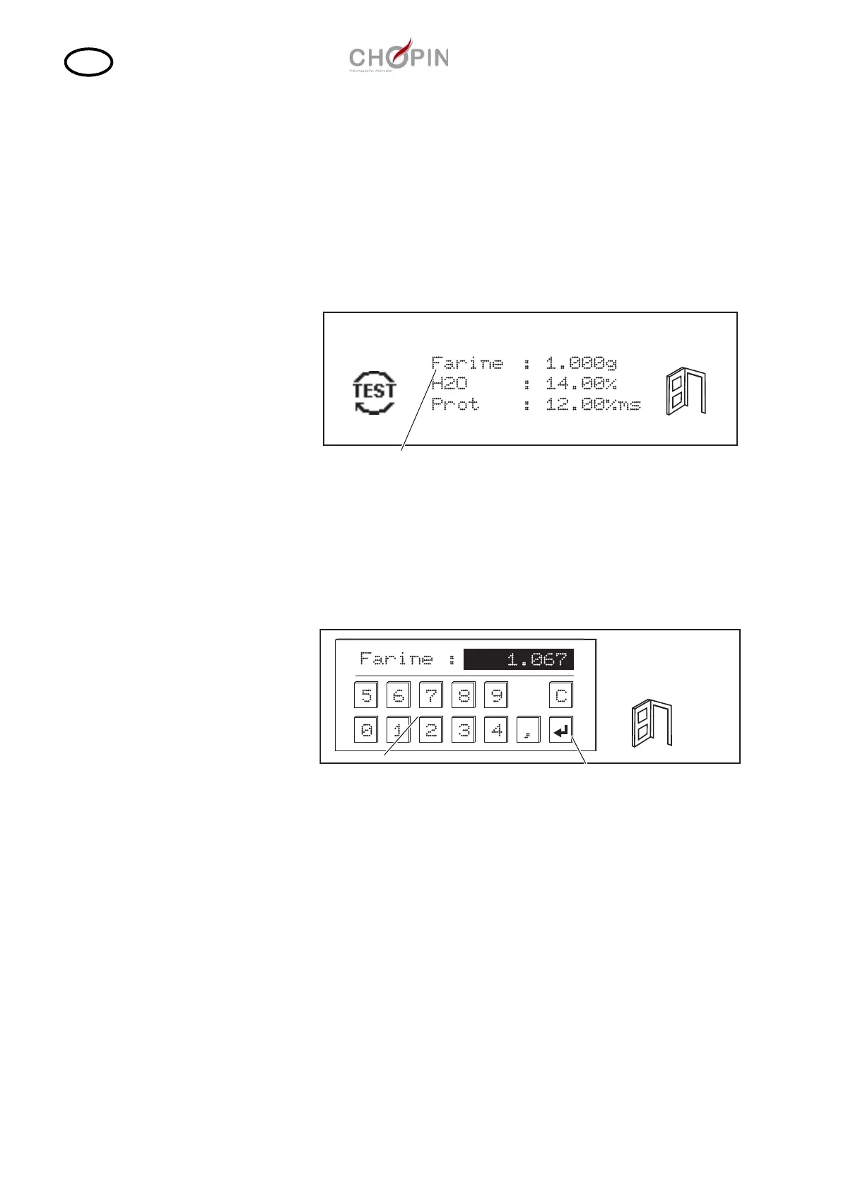 Pour modifier les valeurs eau% ou prot%, appuyer sur la valeur, un