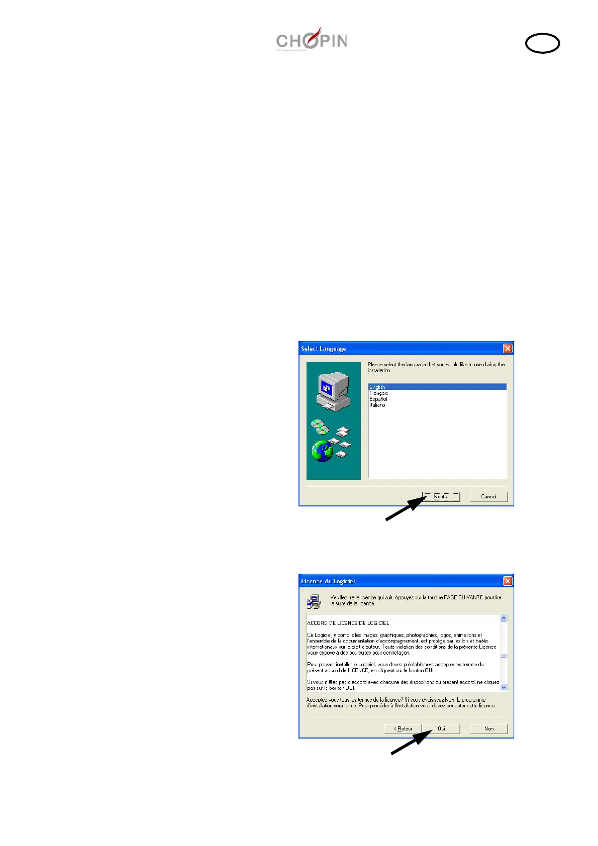 ❏ Lire l’accord de licence logiciel. Cliquer sur "Oui" pour accepter