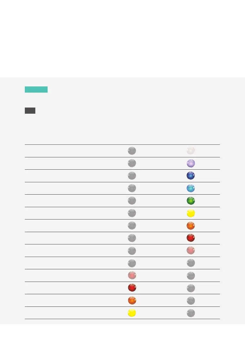 Referring to the chart below, unlit or grey represents the volume up ‘+’ or down ‘-‘ button/s as unlit. If