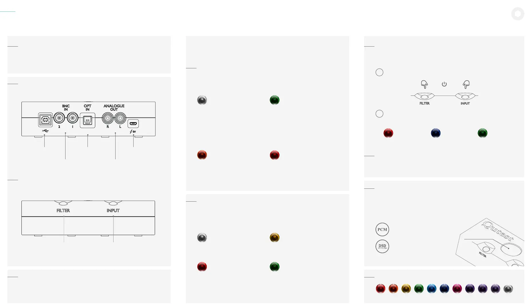 Qutest has two selector spheres on the front of the unit, FILTER and INPUT.