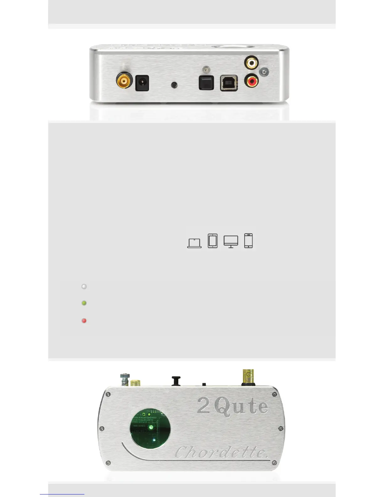 Plug your power adapter into 2Qute and it will cycle through a sequence of colours