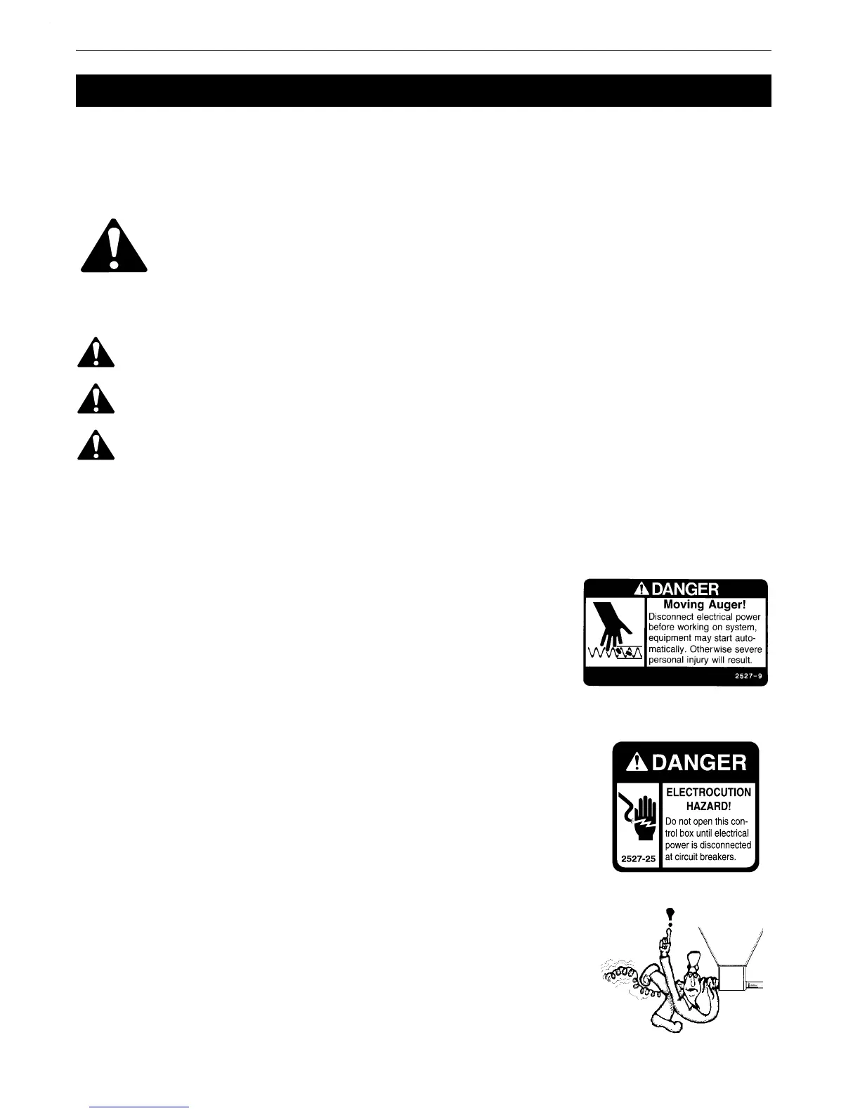 Caution, Warning and Danger Decals have been placed on the equipment to warn of potentially dangerous