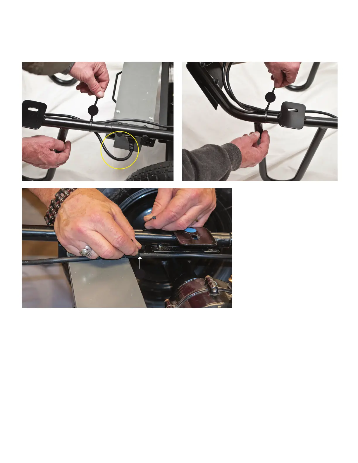 1. Secure wires close to the frame using zip ties (S). Be sure to leave enough slack in the power cord so that it can be easily unplugged from