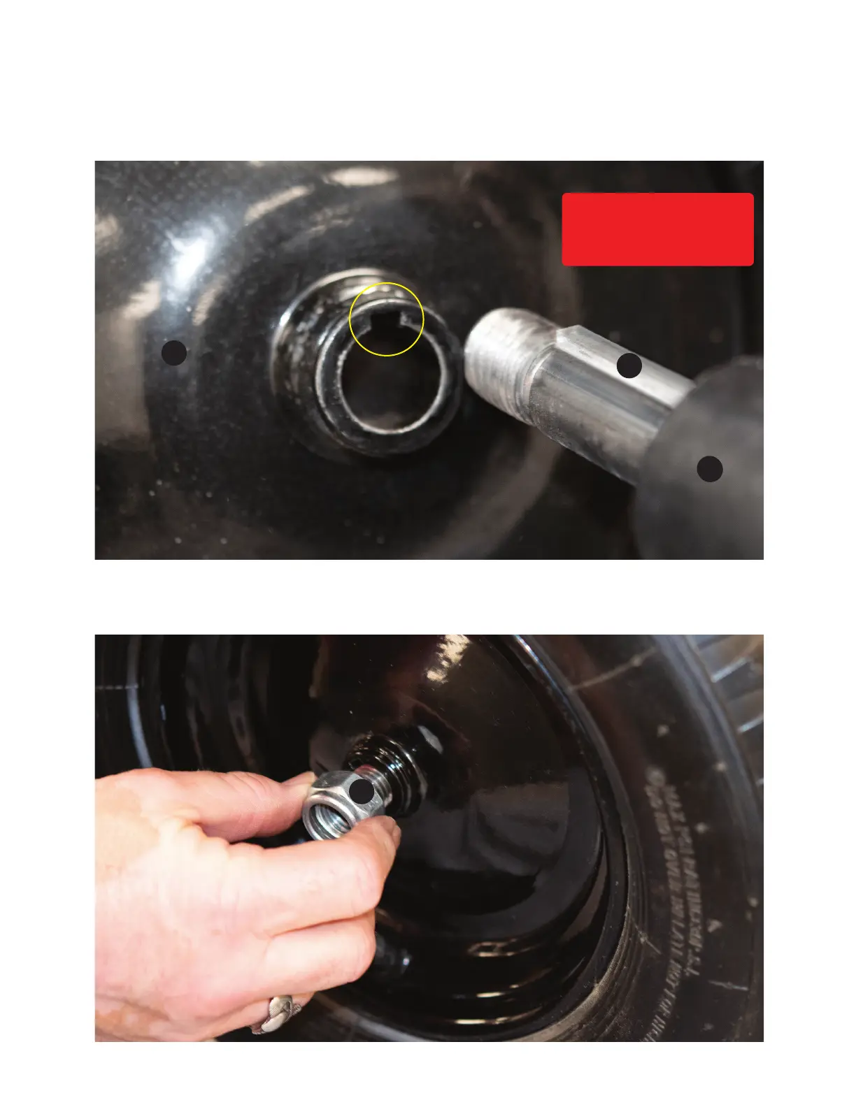 After tire assembly, tighten all