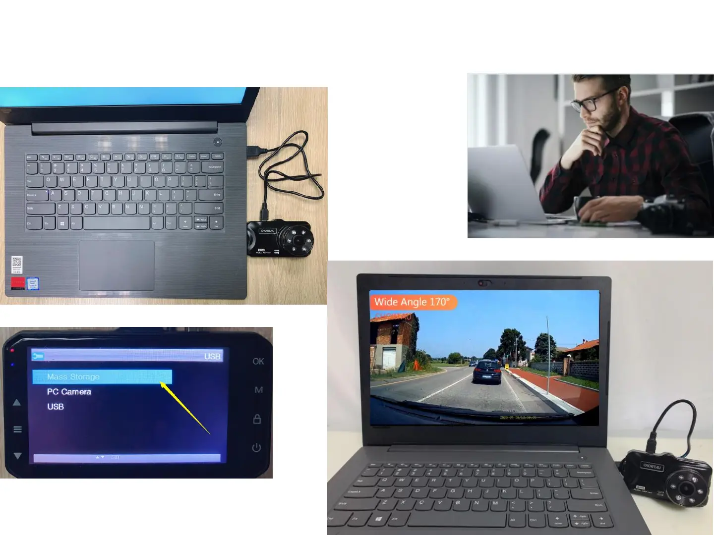Connect dash cam with laptop directly with package included mini USB data cable