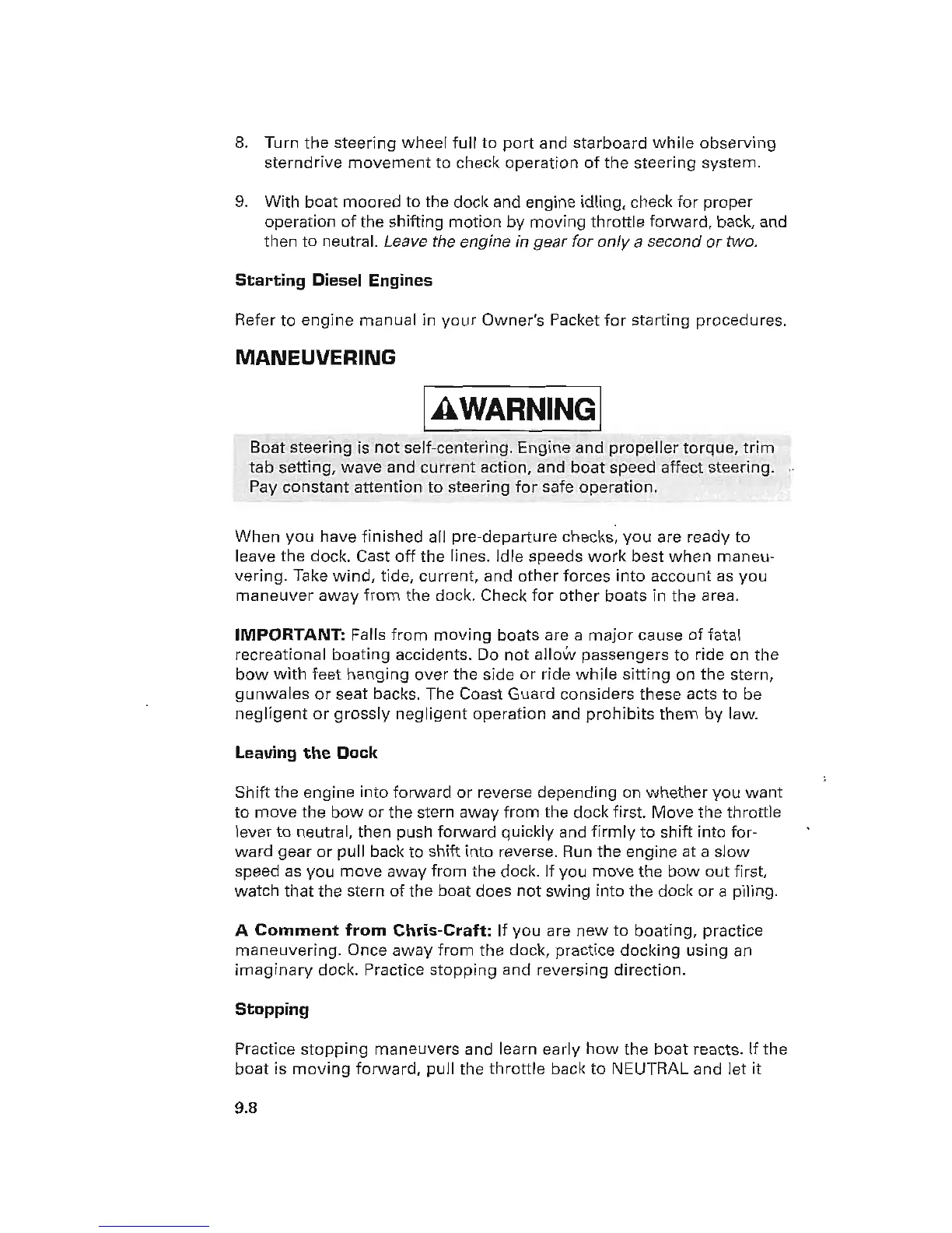 Chris-Craft Capri 21 - Starting Diesel Engines; Leaving the Dock; Stopping