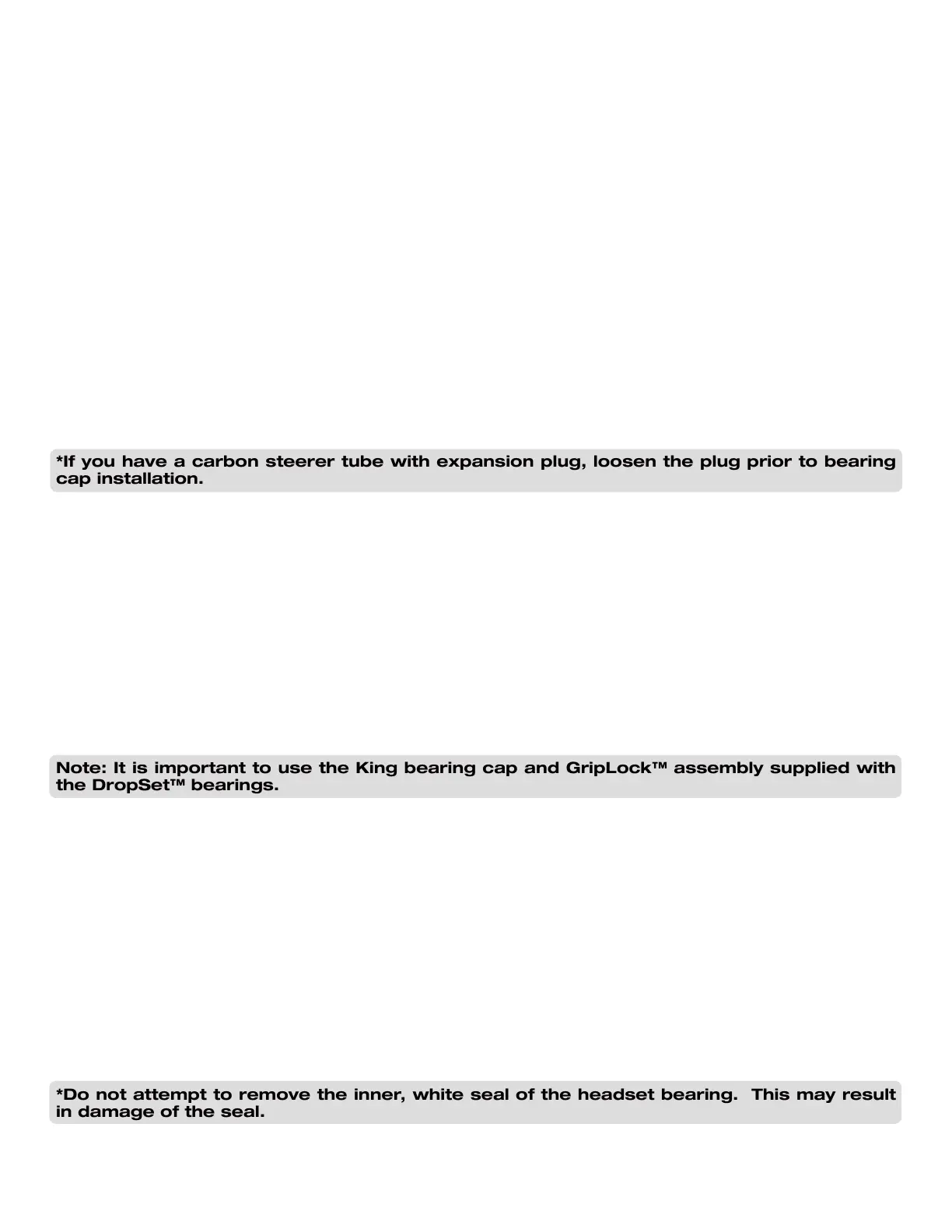 *Do not attempt to remove the inner, white seal of the headset bearing. This may result