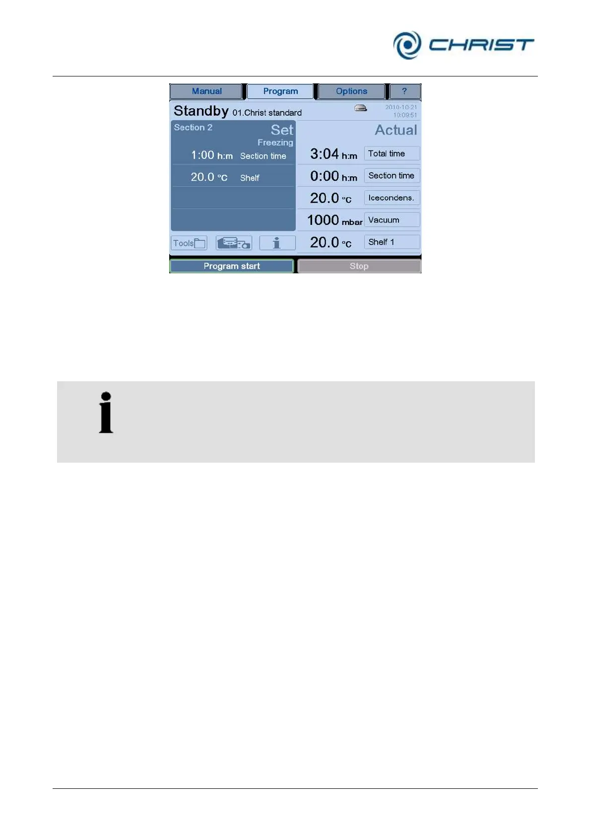 Fig. 68: The freeze-drying process can be started with the aid of the button “Program start”.