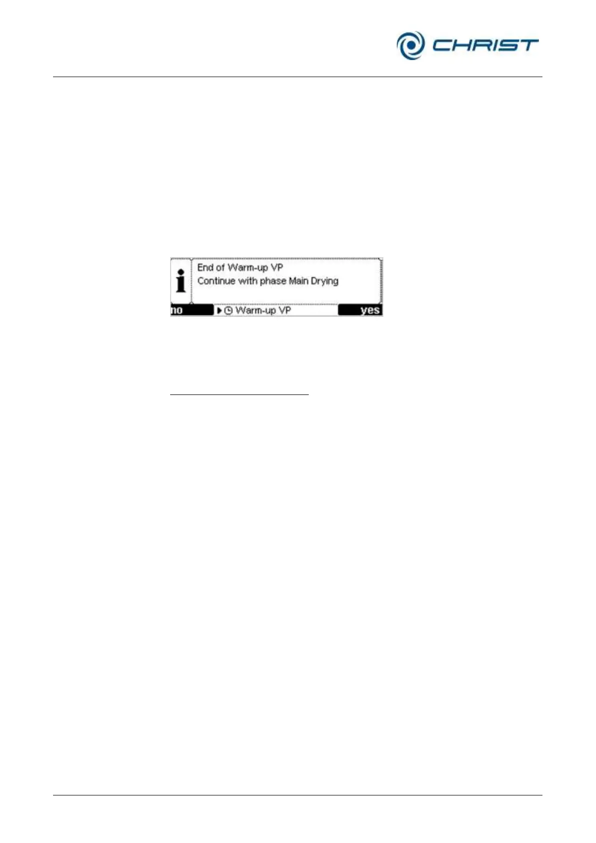 Fig. 29: Message at the end of the warm-up phase