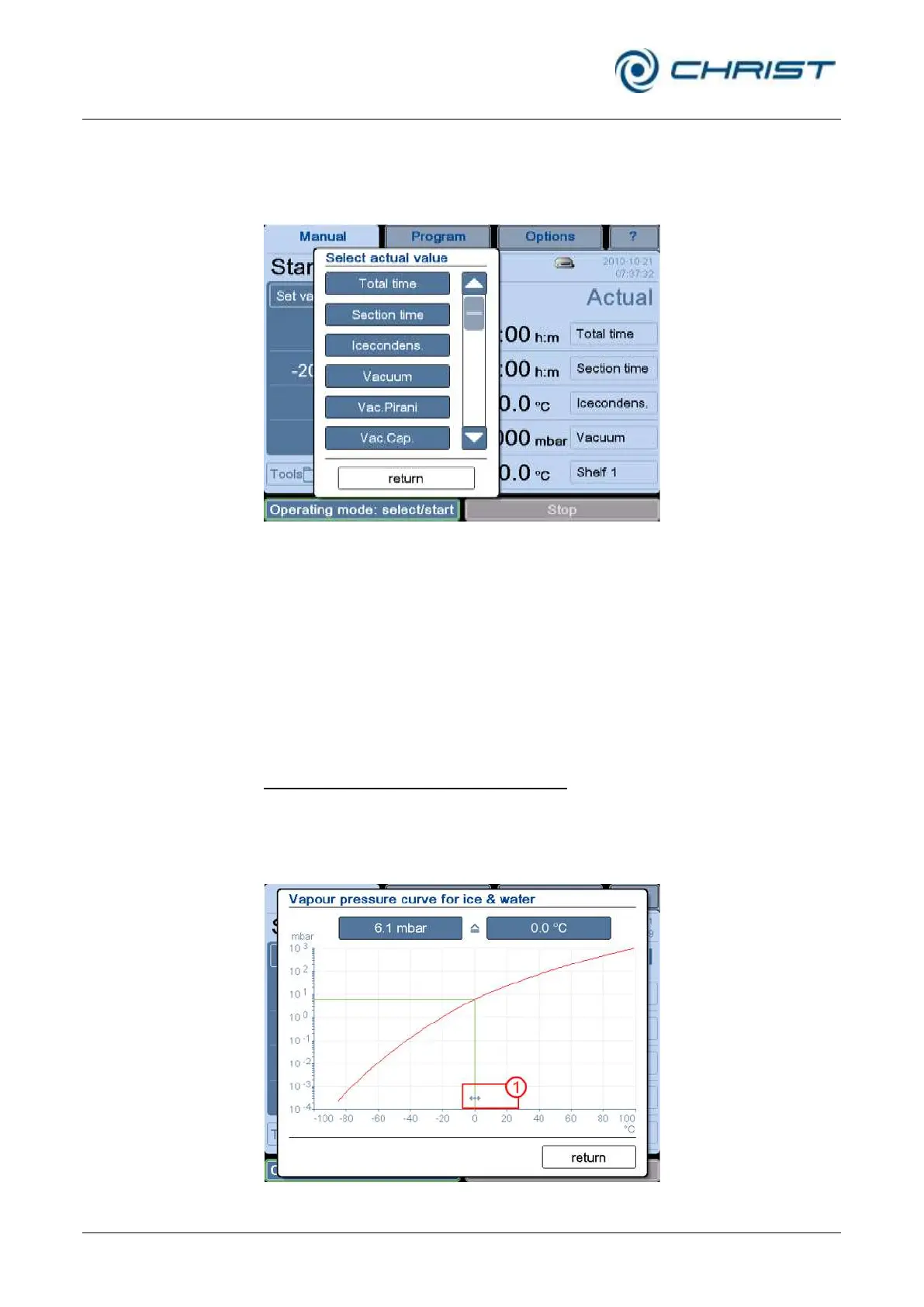 Fig. 24: Dialog box “Vapour pressure curve for ice and water”