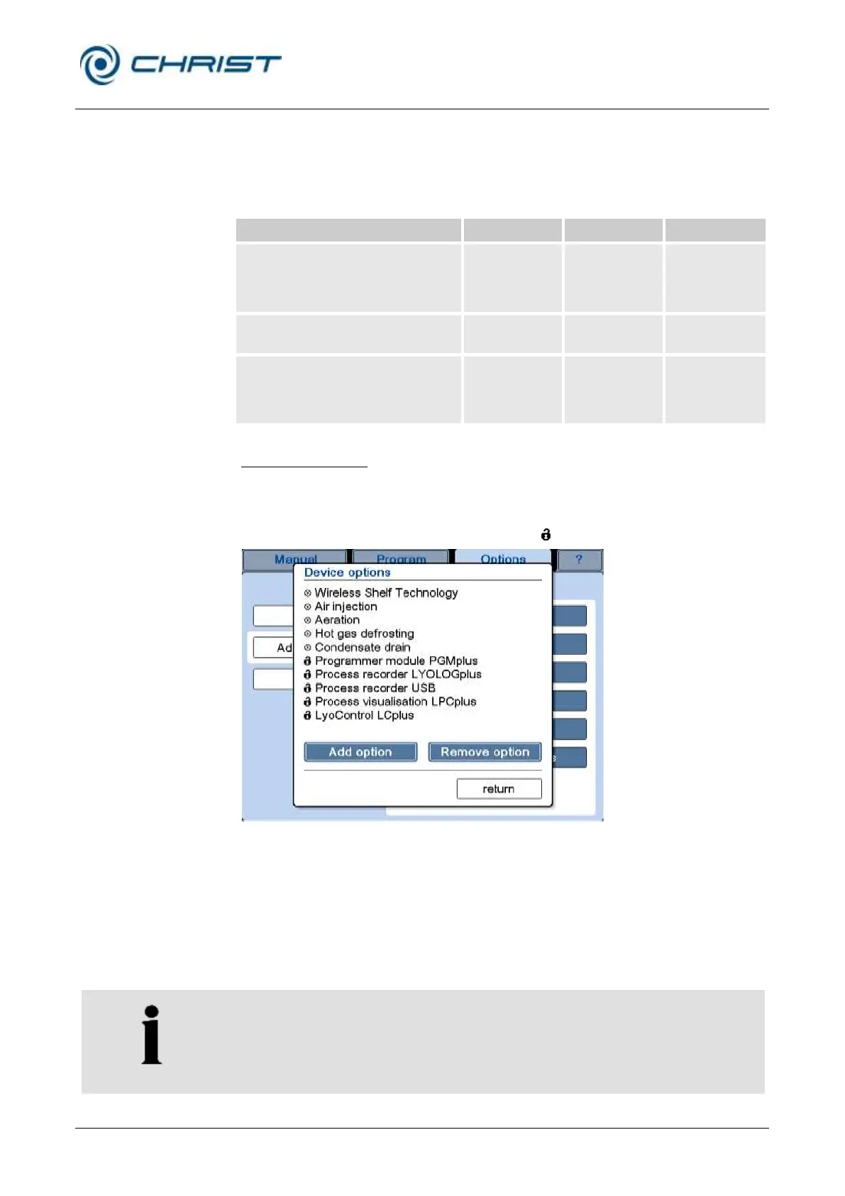 If the freeze-dryer is to be extended by an option, this option must be