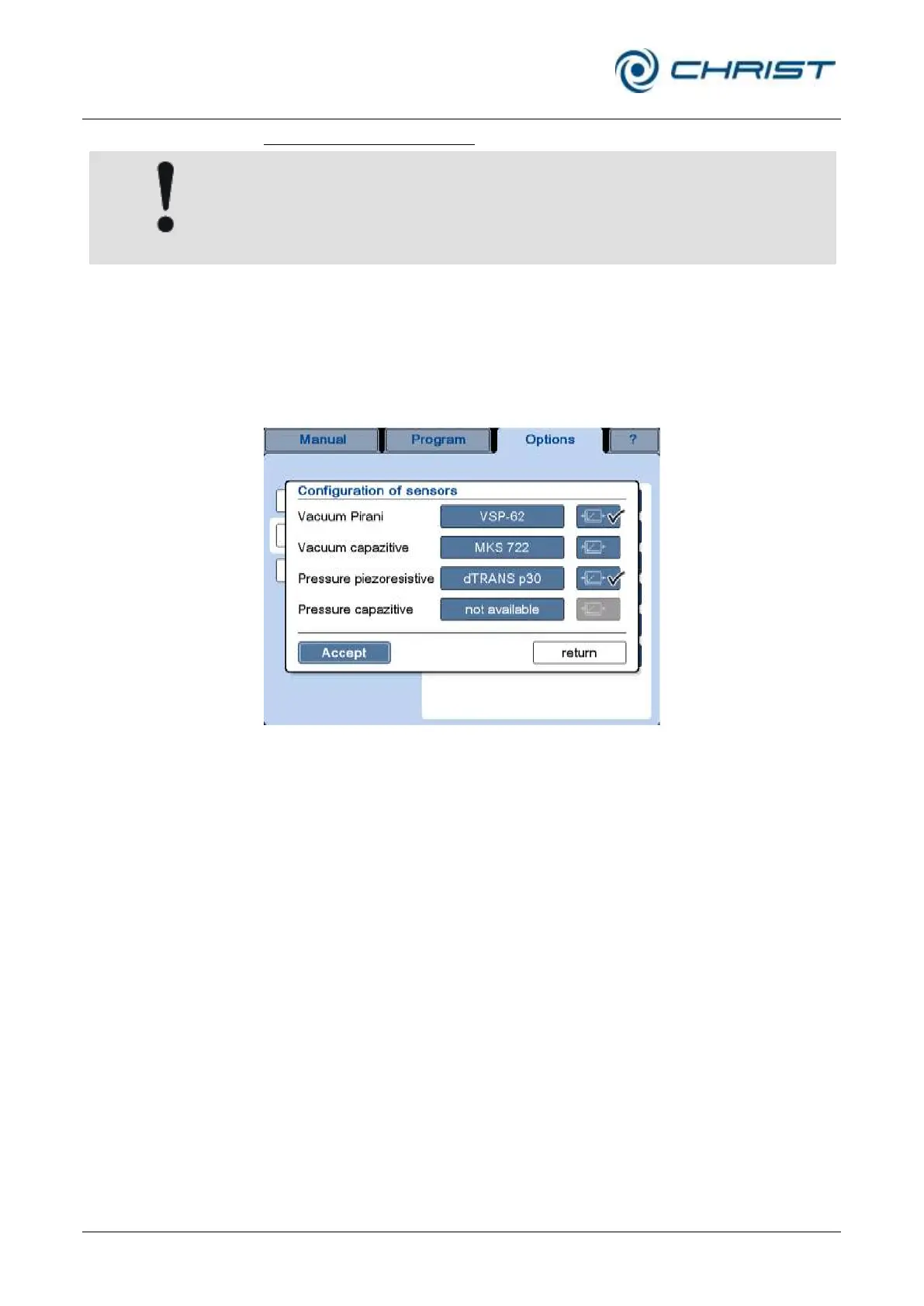 This dialog box is used to configure the existing vacuum and pressure