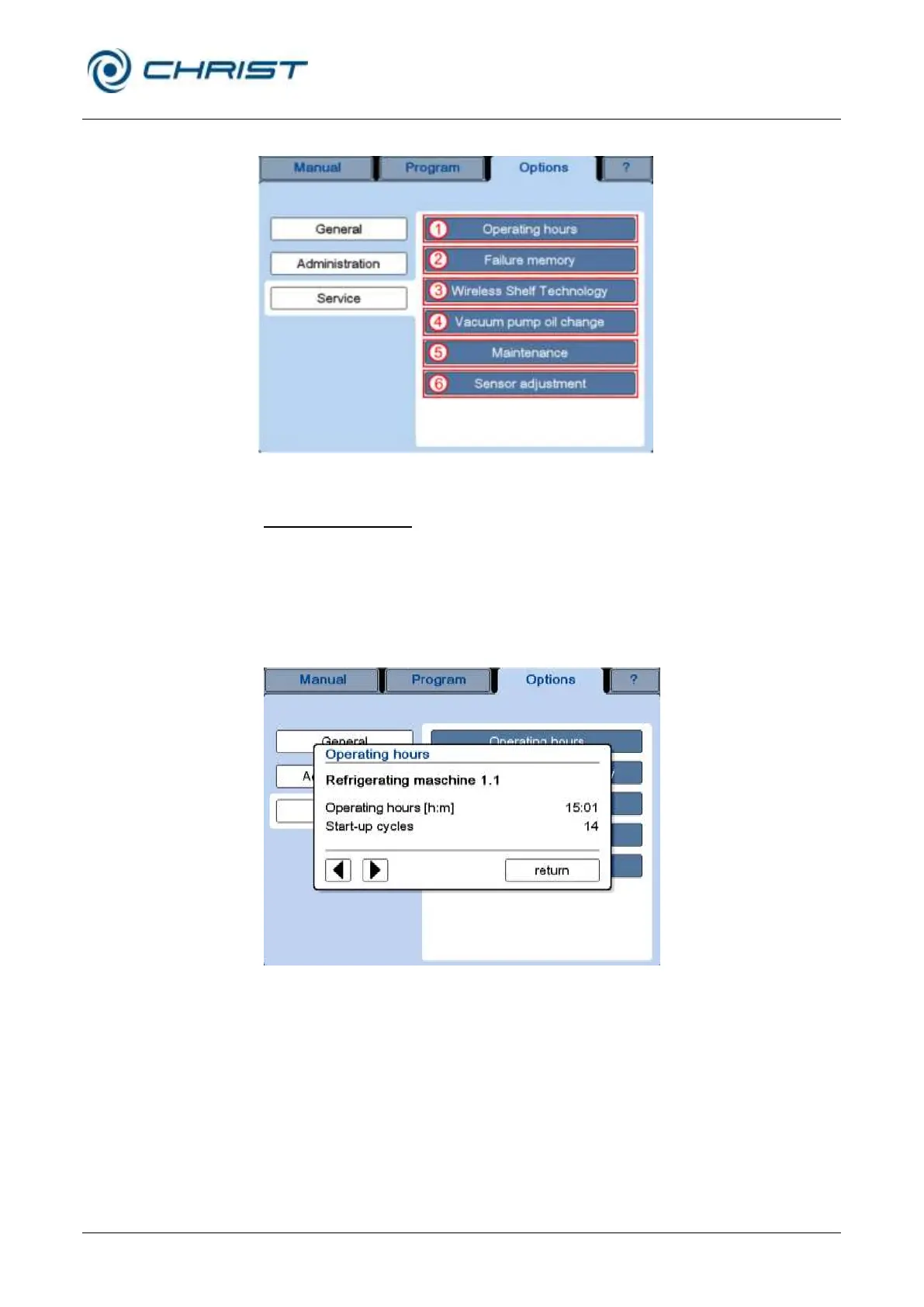 Fig. 48: Dialog box "Operating hours" (here: refrigeration unit 1.1)