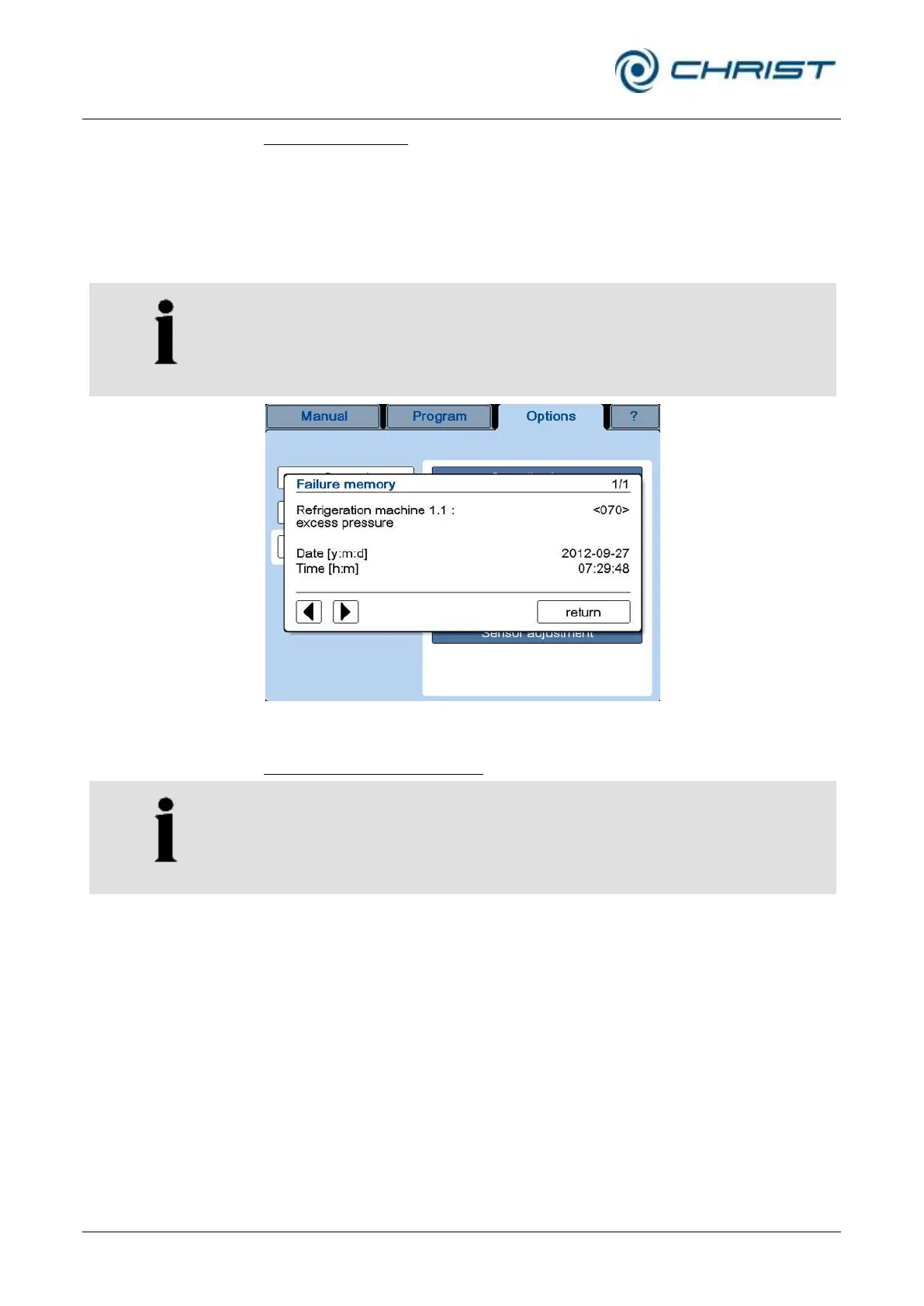 Fig. 49: Dialog box "Failure memory"