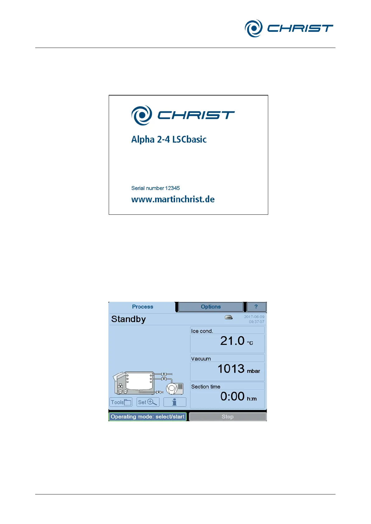 Fig. 17: Start screen of the LSCbasic control unit (example)