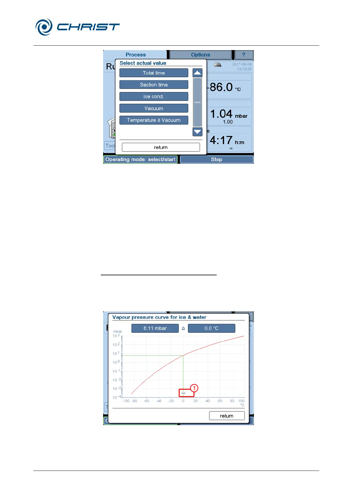 of the buttons or by moving the arrows (see item 1 in the screenshot). The
