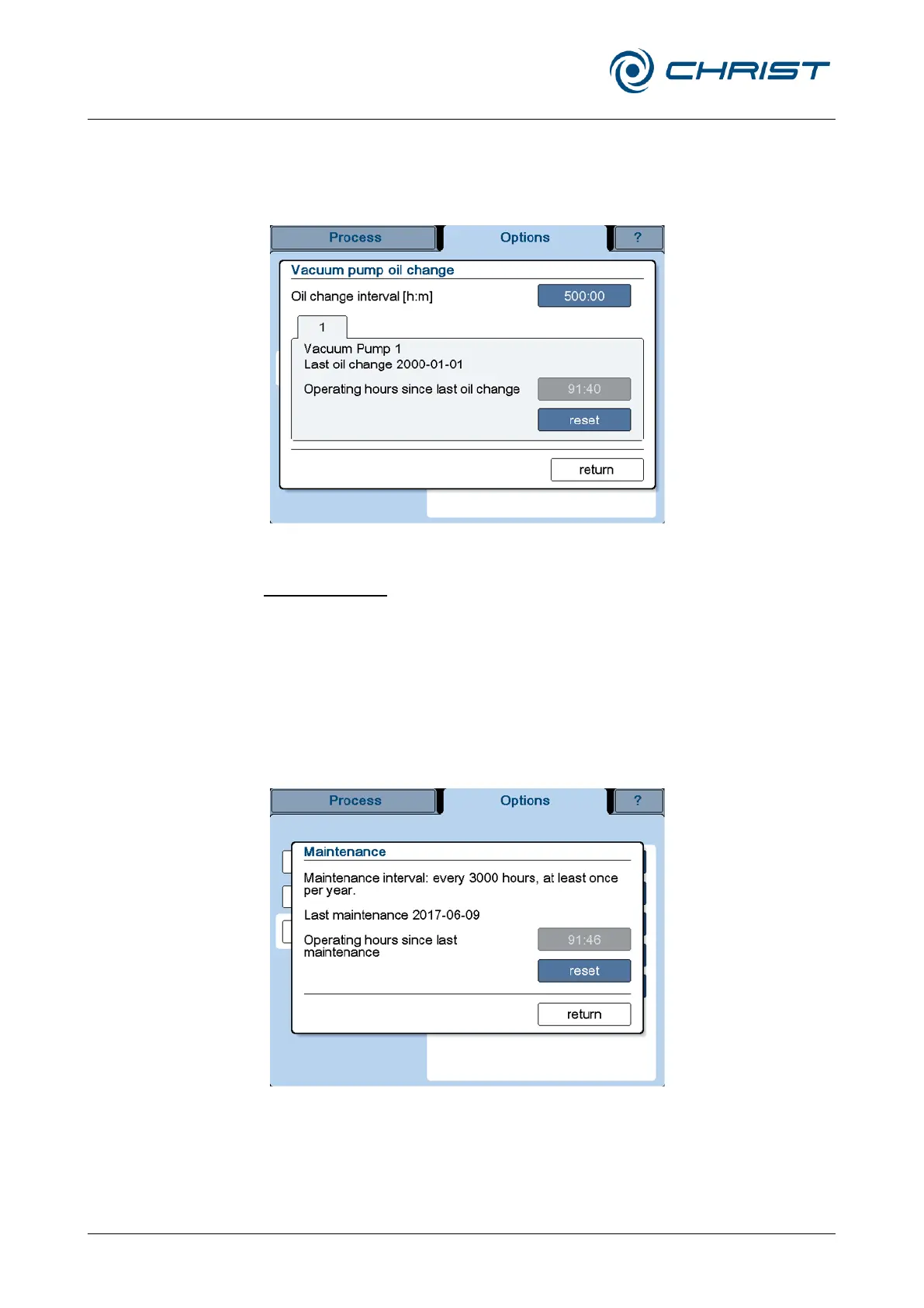 • Reset the operating hour counter in the dialogue box "Vacuum pump oil