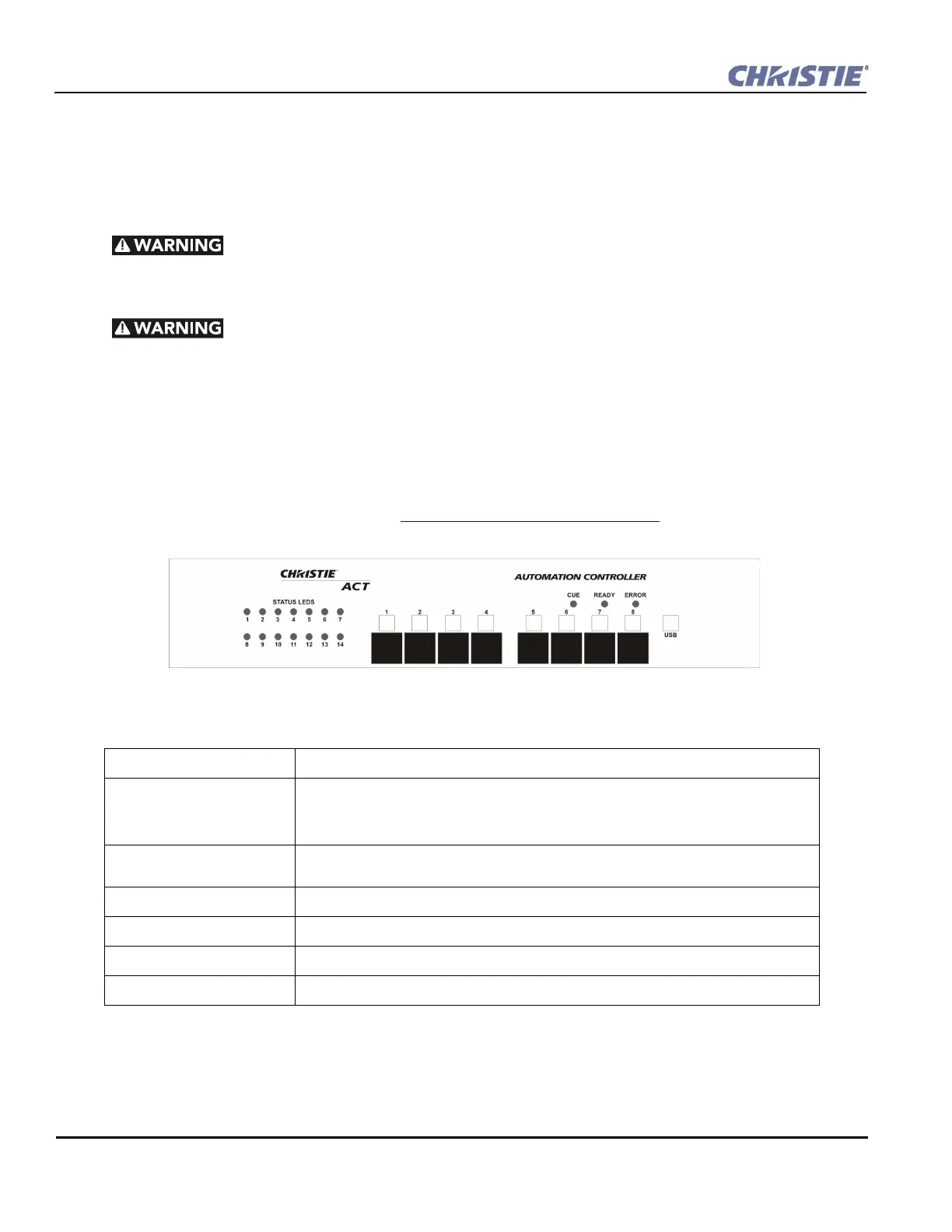 NOTE: The Christie ACT unit is intended for installation in a RESTRICTED ACCESS LOCATION only.