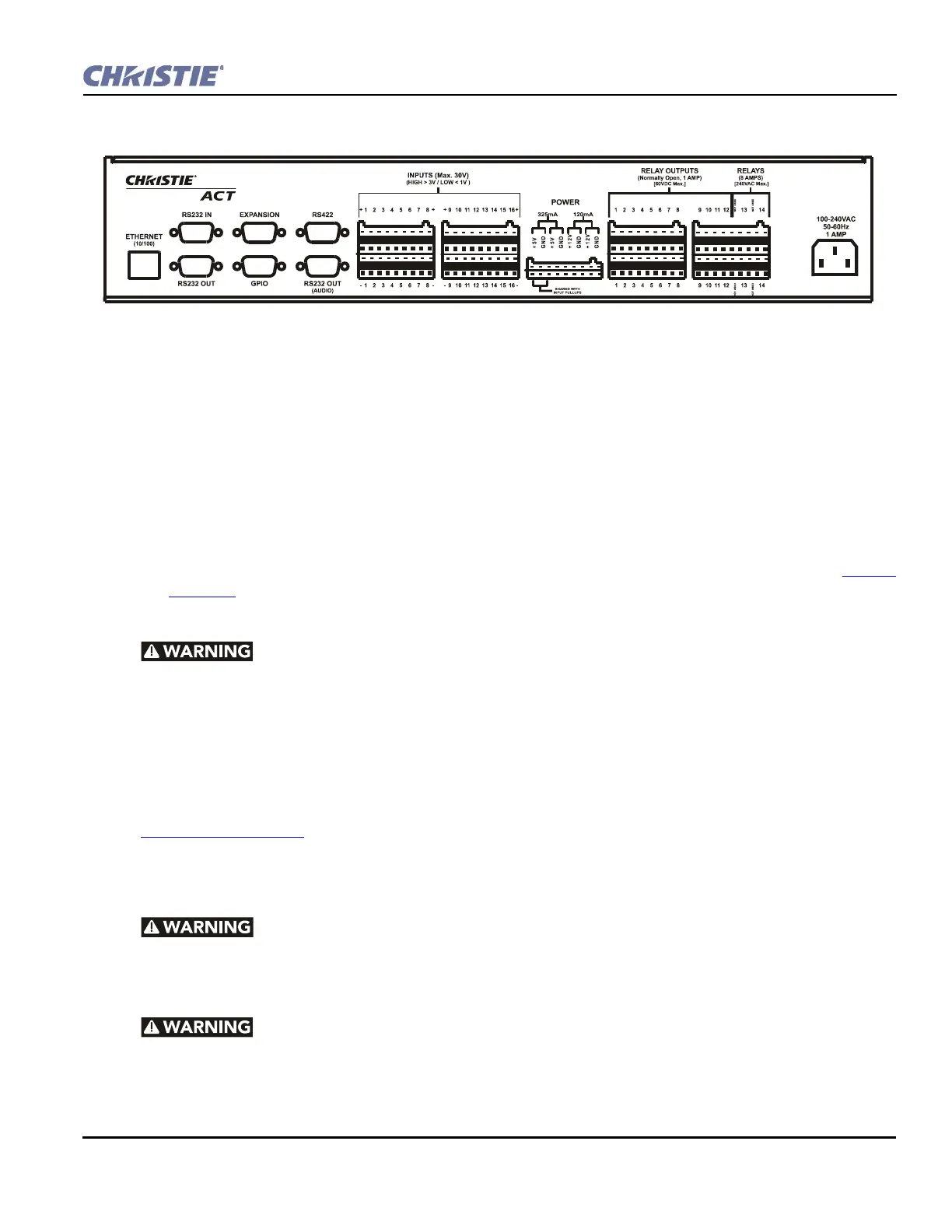 convenience outlet in the CP2000 pedestal. Christie ACT is rated for 100-240VAC. Refer to