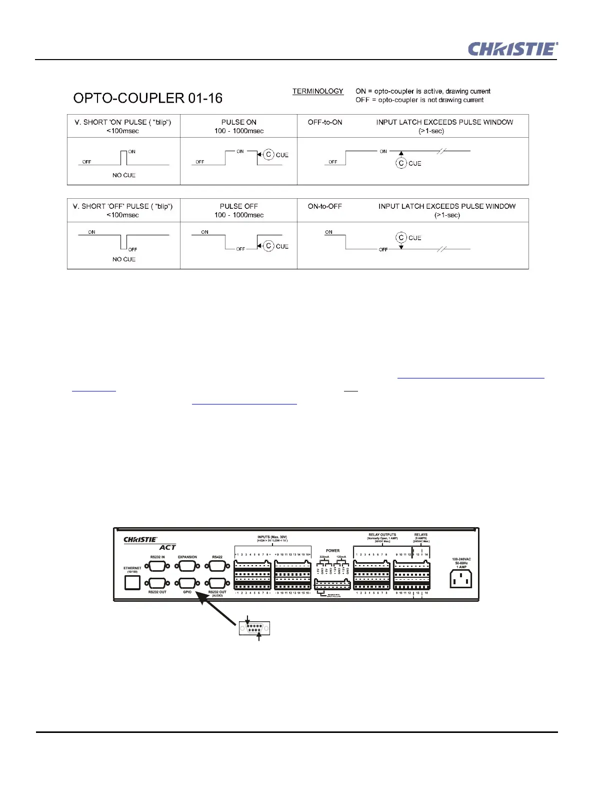 The 9-pin GPIO male connector is located on the back panel of the Christie ACT. Refer to . It provides a
