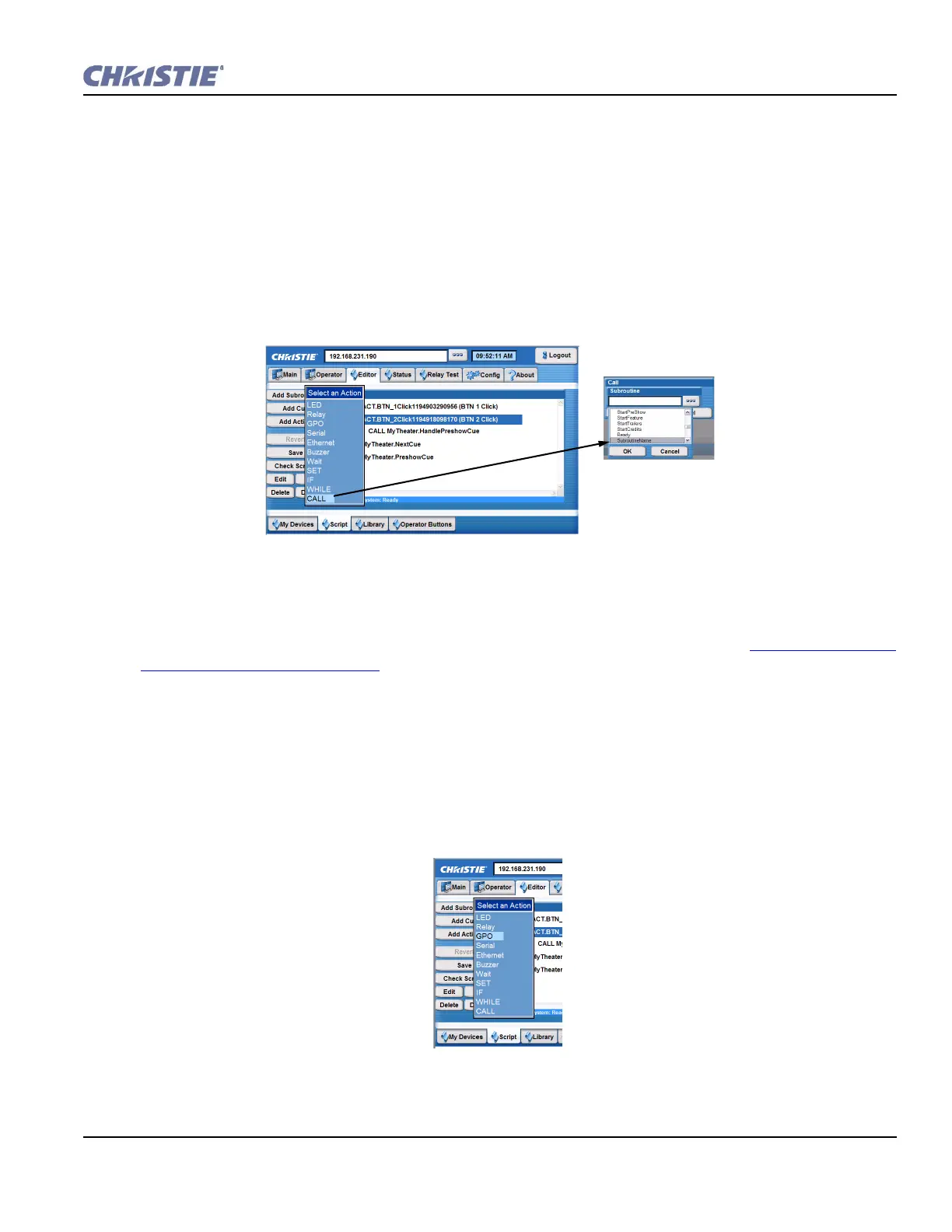 To create an action, you must first create a Subroutine so that it appears in the Script area. Section 3.9.2 Adding