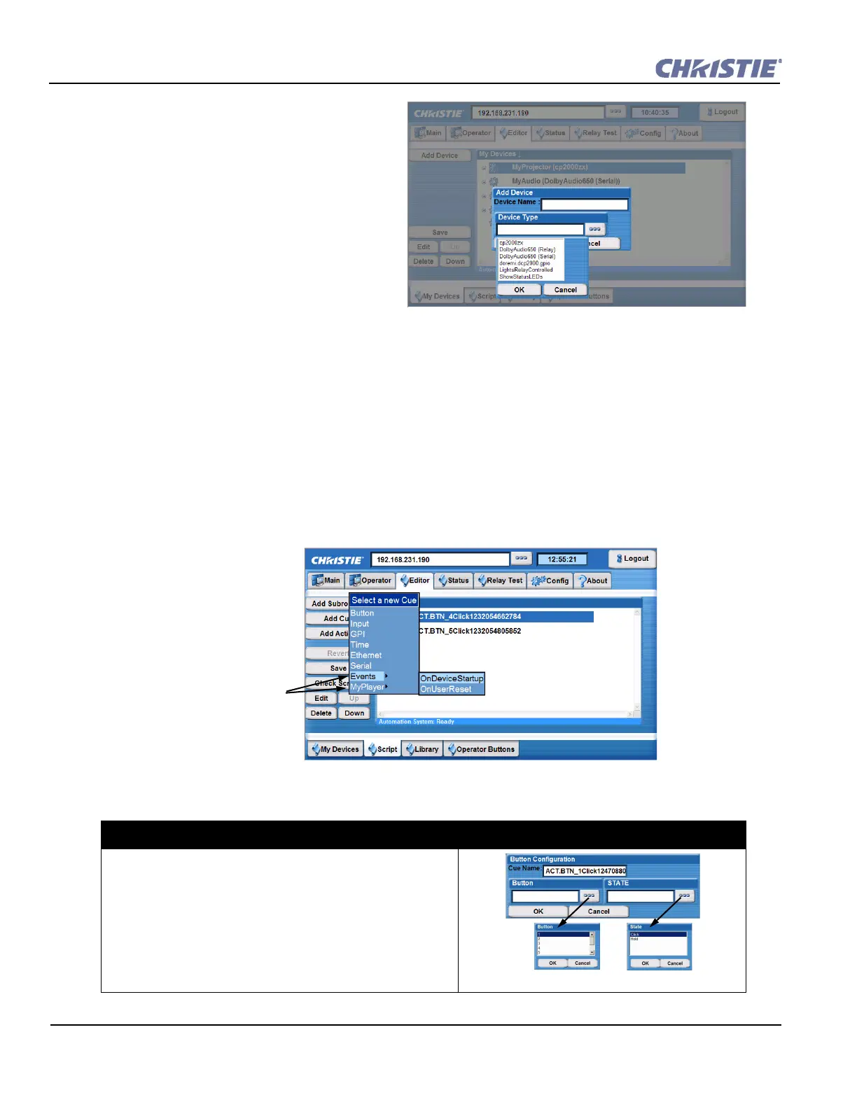 show. Saving a script resets Christie ACT’s script management engine. If Christie ACT is in the middle of running a script and