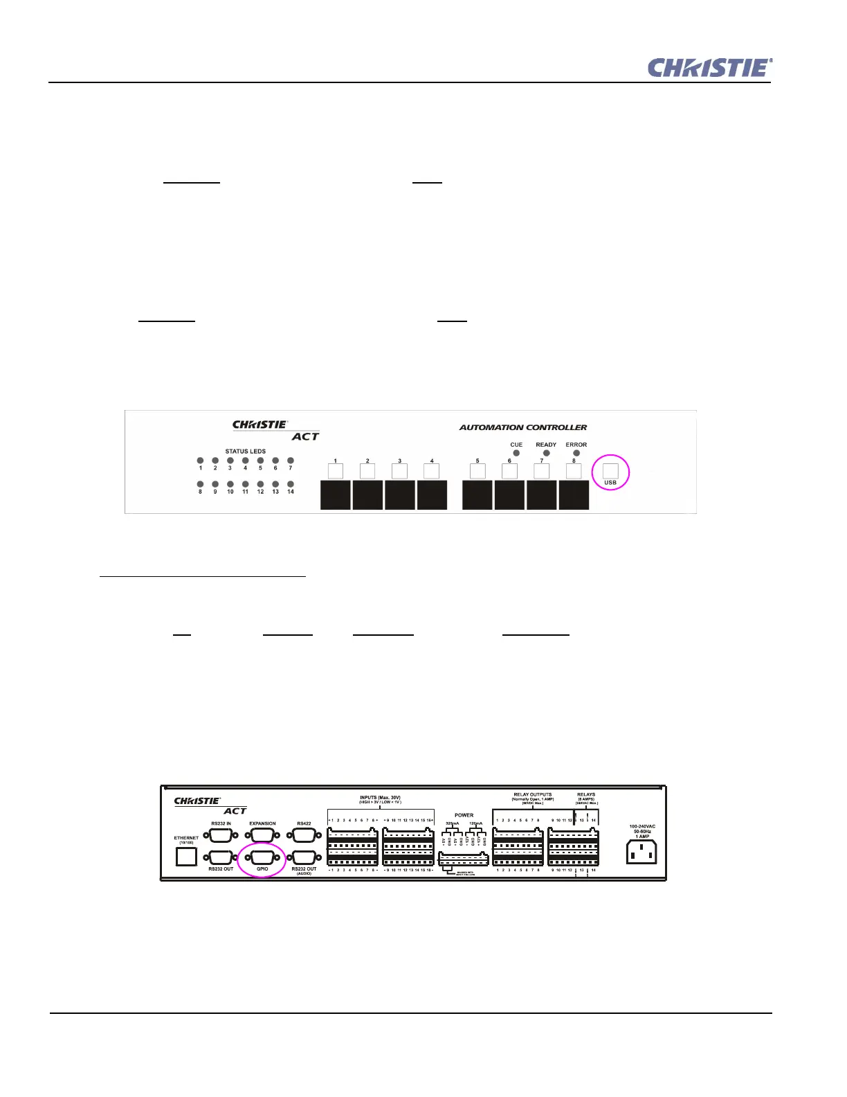 The USB is located on the front panel of Christie ACT and is a deferred feature.
