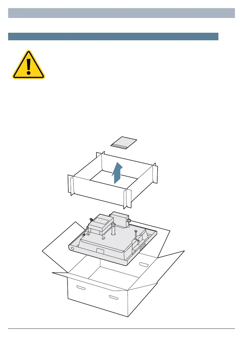Open the box and remove cardboard packers to reveal the underside of the appliance.