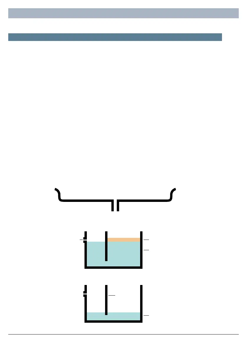 Oils float on top of the water, which allows water to flow under the internal partition in