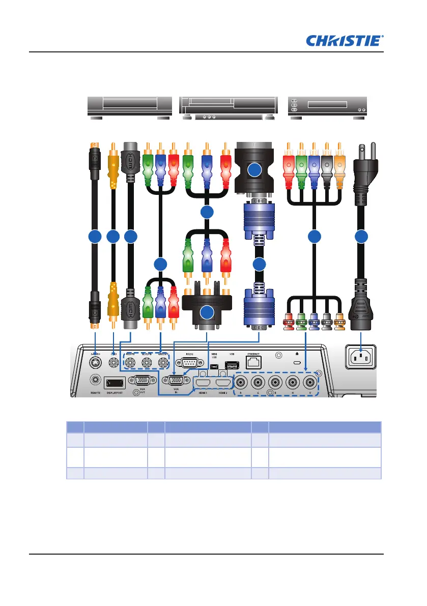 The diagram shows the cables/connectors that may be used to connect to various devices.