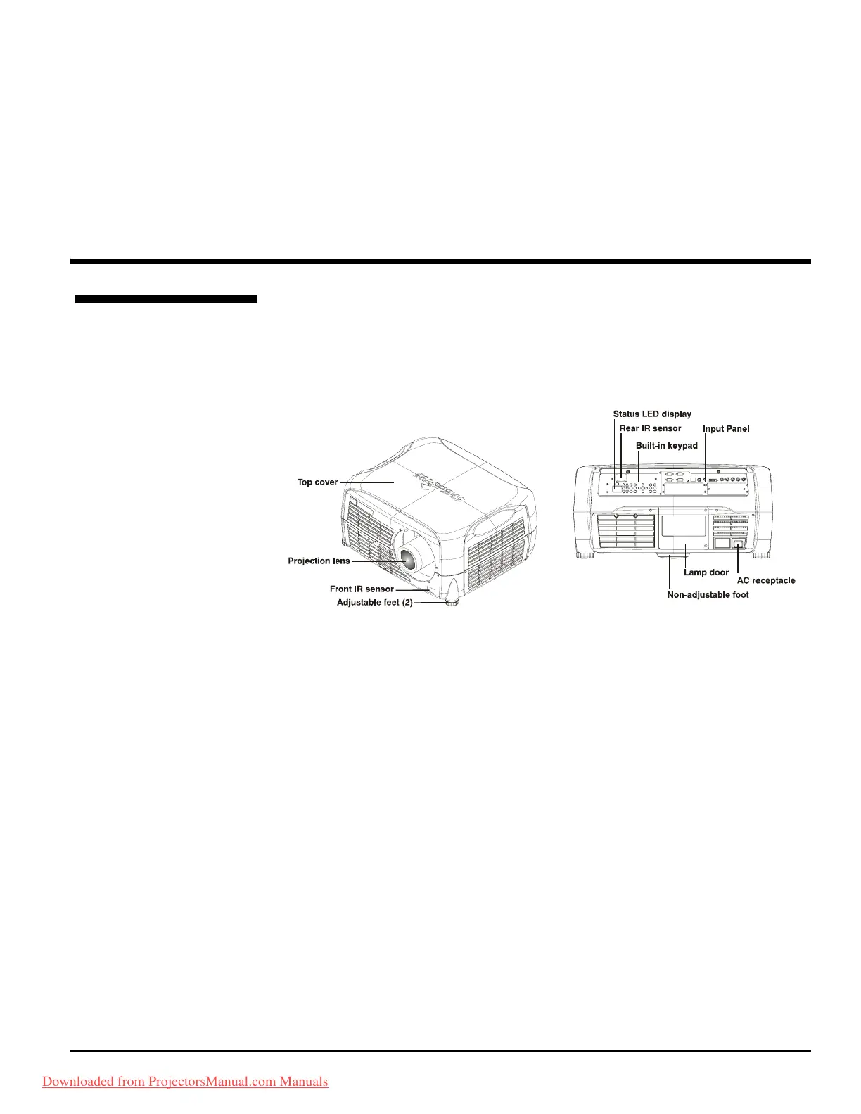 Located on the underside of the projector are two fully adjustable feet. Raise or lower