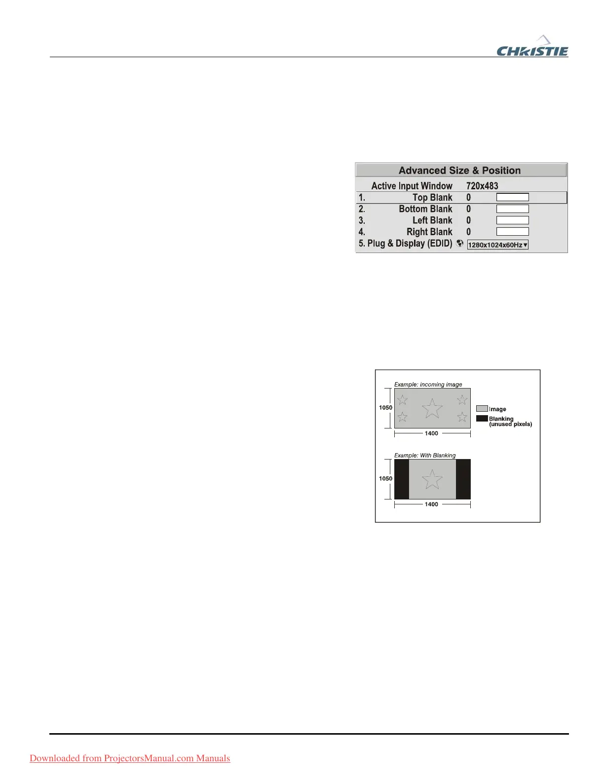 settings. For example, if you have blanked (cropped) 100 pixels from both the left and