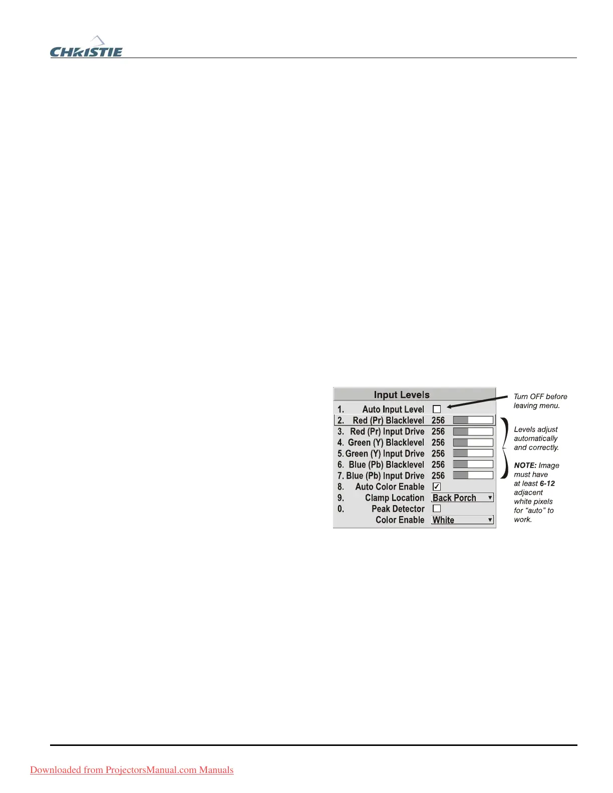 may prefer to use the Input Levels menu (shown above). These adjustments, which
