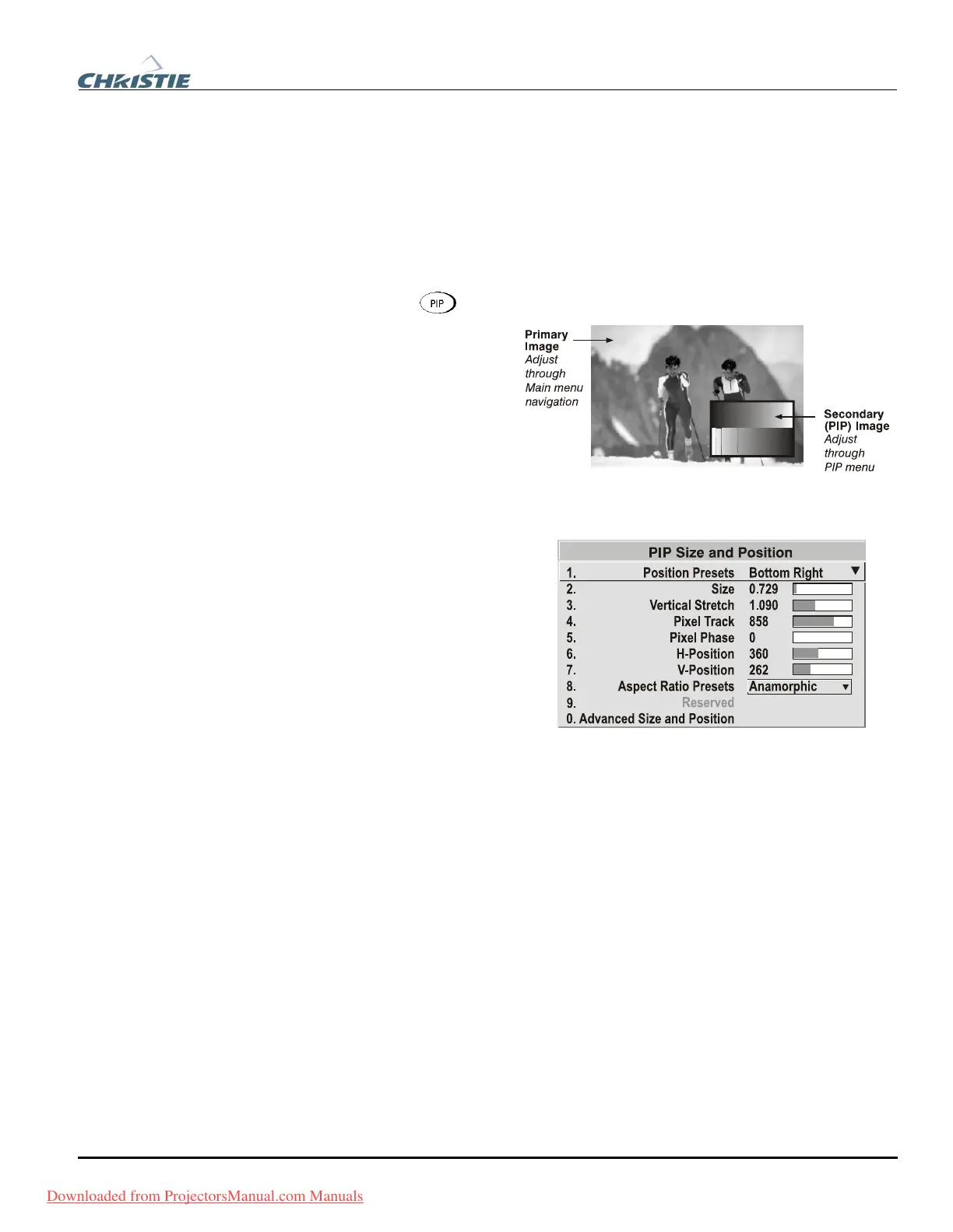 Adjust the PIP (secondary image) without affecting the size or position. The primary