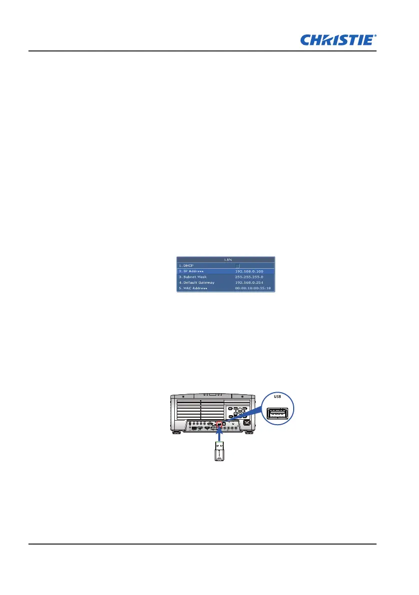 Determine the projector’s IP address from the menu Main Menu >