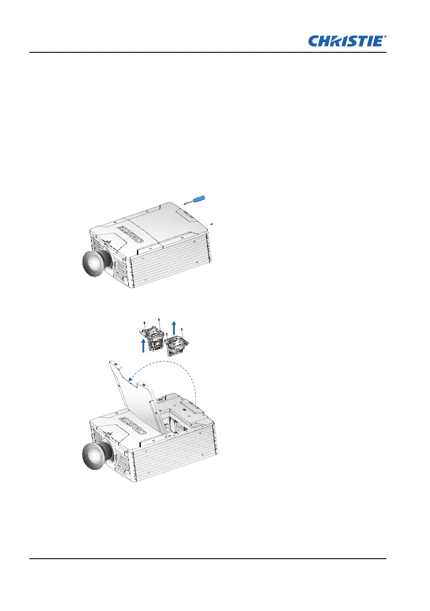 Remove the lamp:6. Loosen the two captive screws securing the lamp.