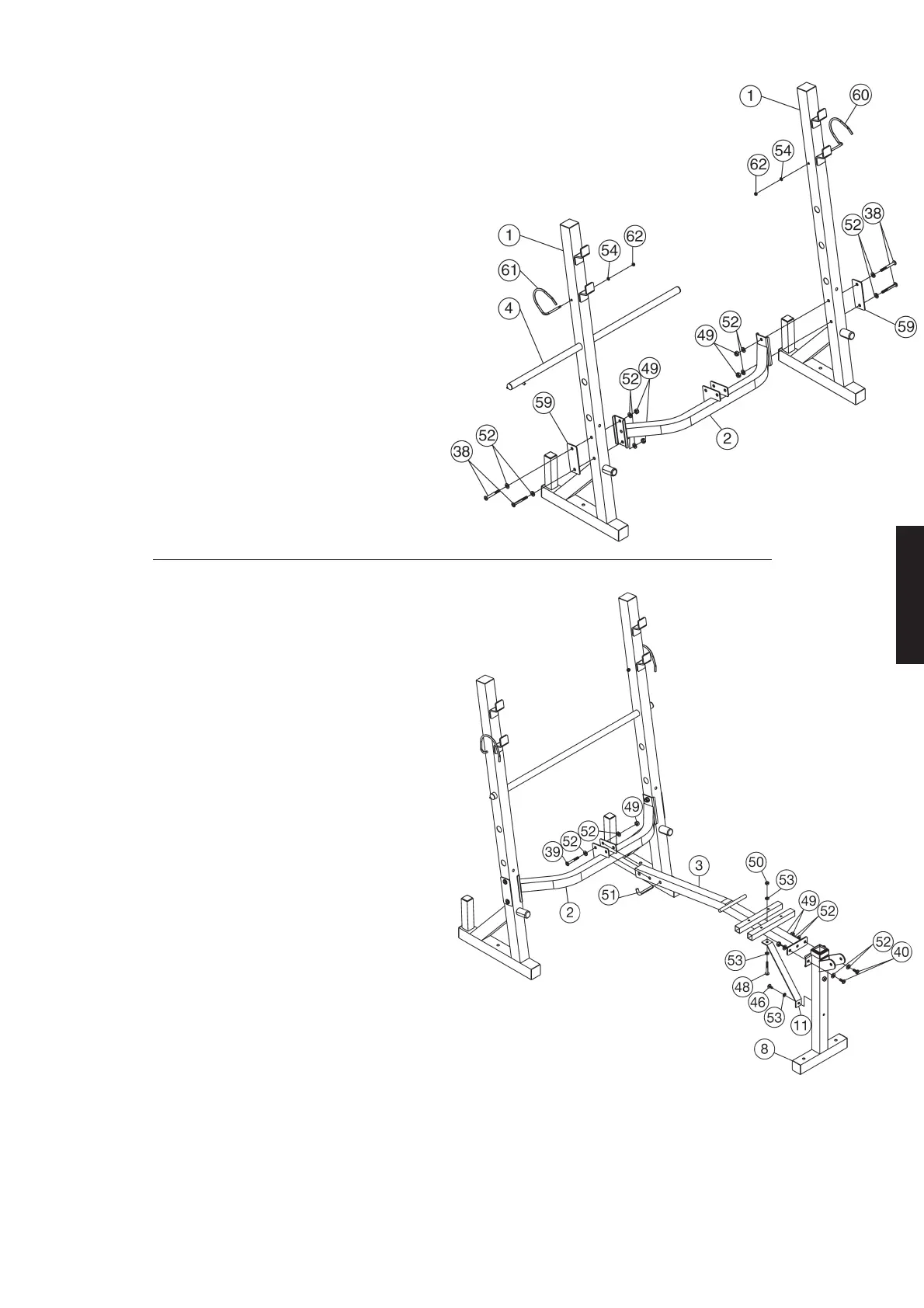 2. Op de schroeven M10x25 (40) telkens één onderlegplaatje (52) steken