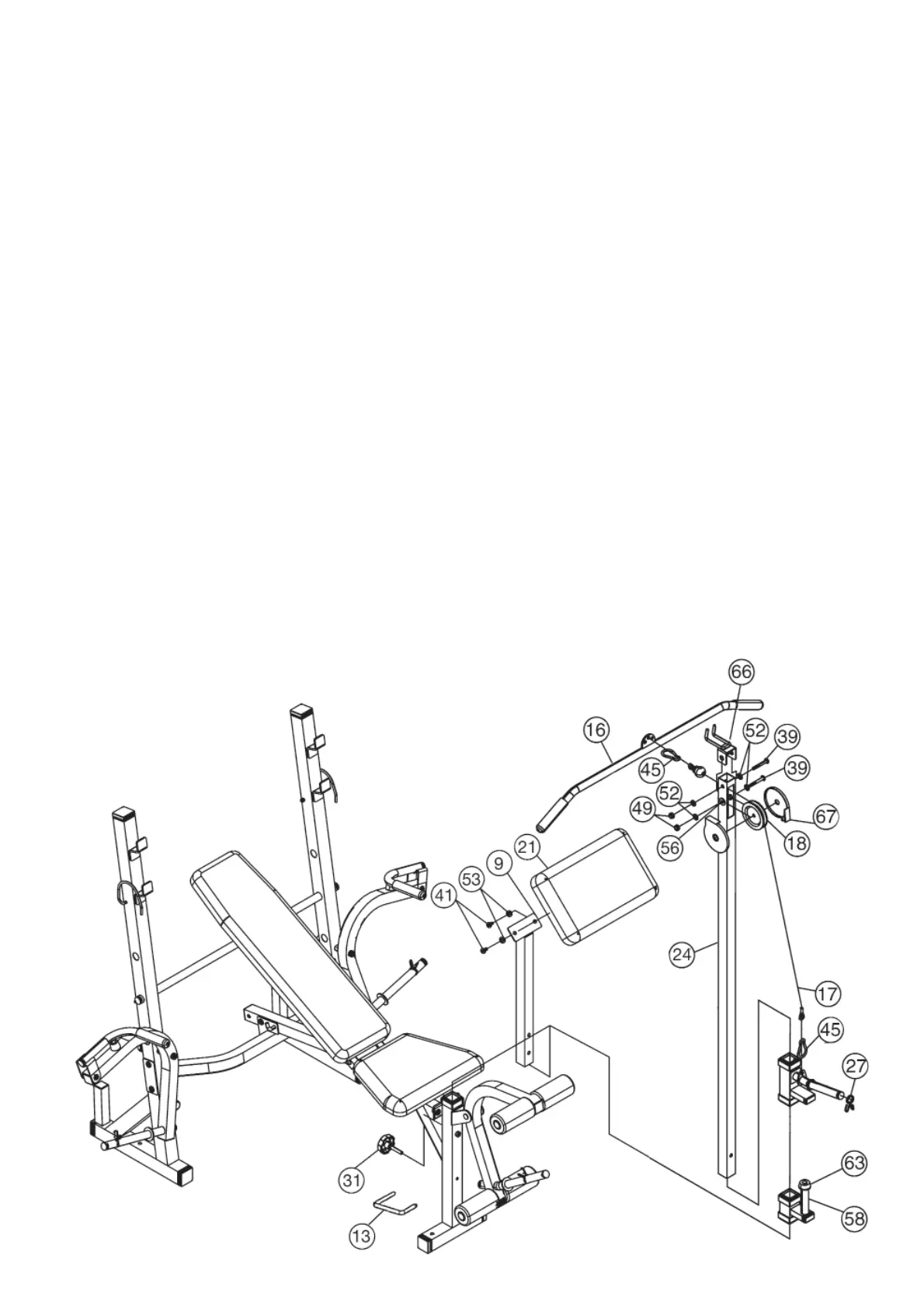 Montage van de Latissimustoren (24), van de gewichtsleden (14), de