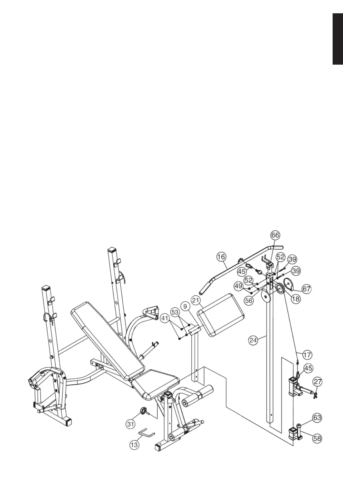 2. Beide Schlitten (14 + 58) von unten auf den Latissimusturm (24)