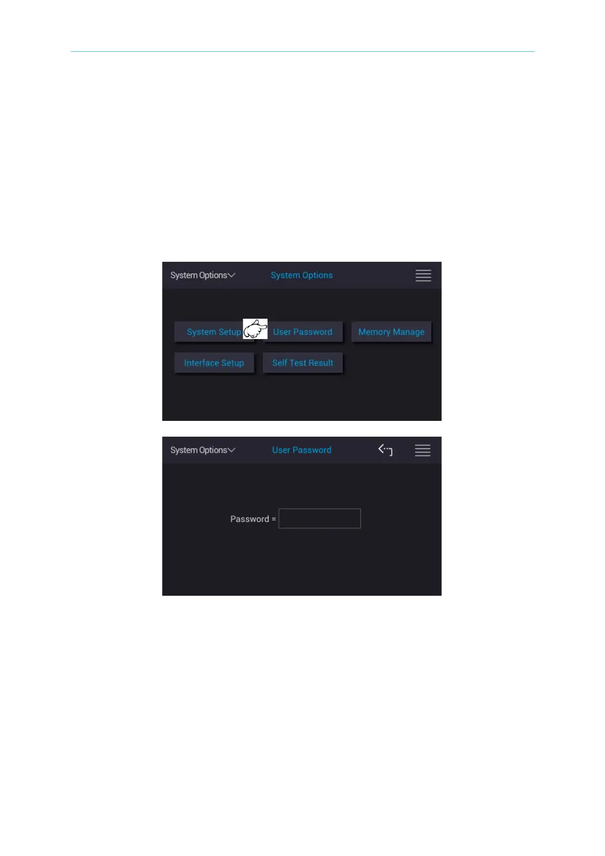 Touch the selection at upper left side of main screen and return to main menu. Touch System