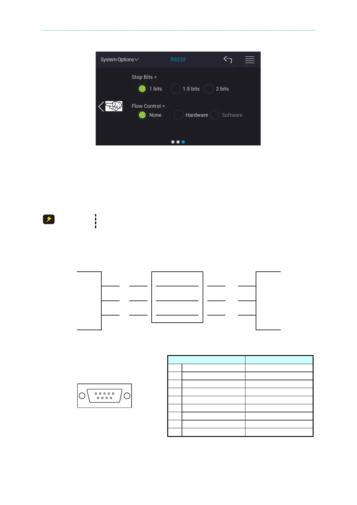 RS-232C connector of the tester is a 9-pin female connector, the table of RS-232C signal line