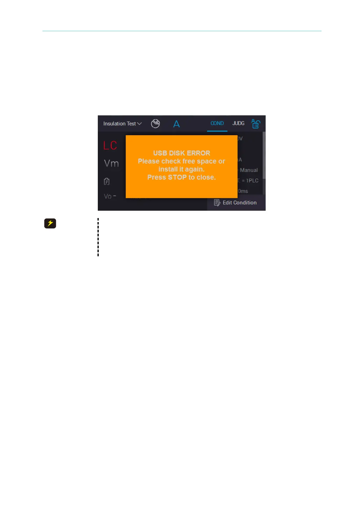 the monitor shows the warning message as the below figure. The tester is unable to operate