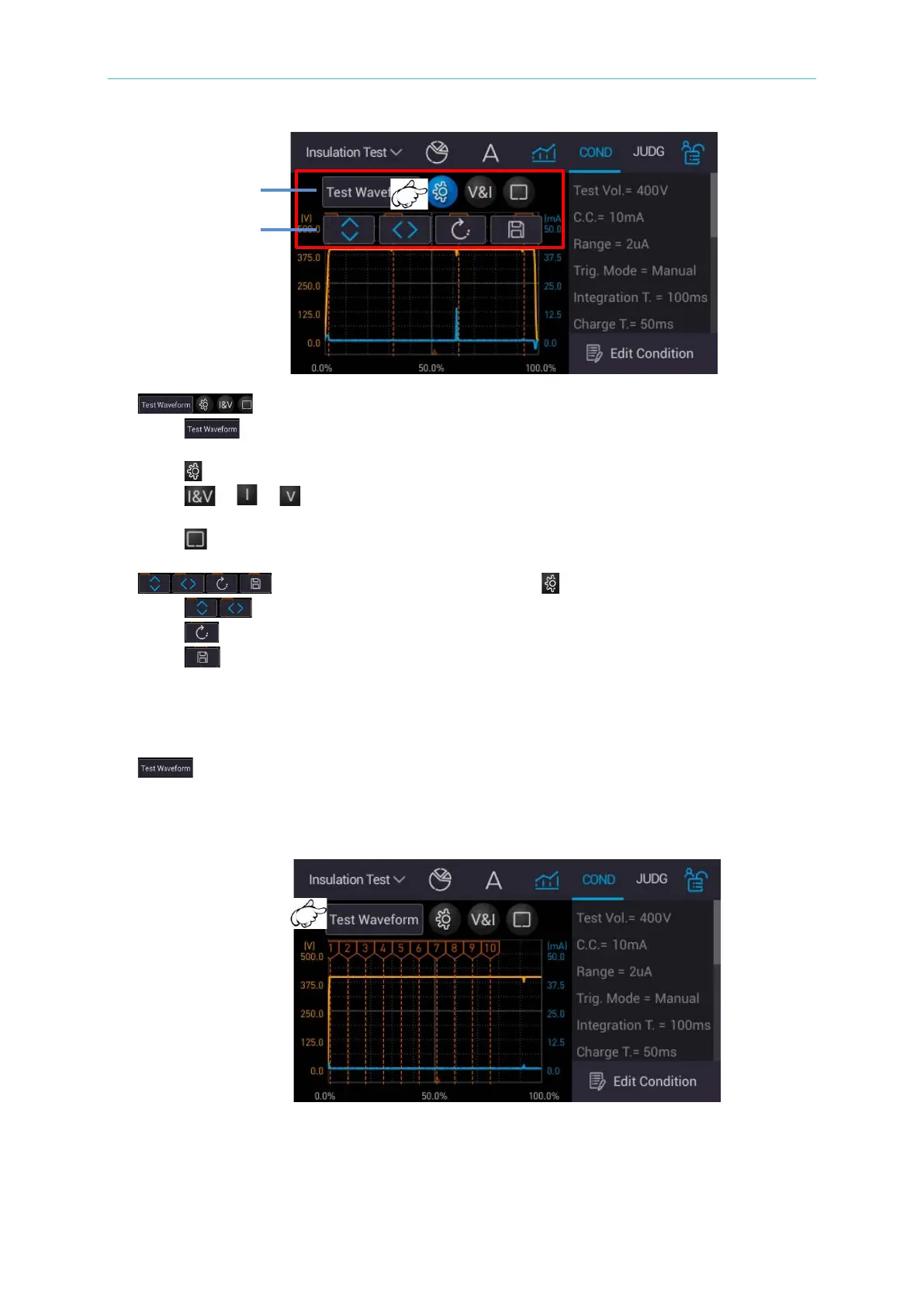 iii. / / : “Simultaneously display test voltage/output current waveform”,