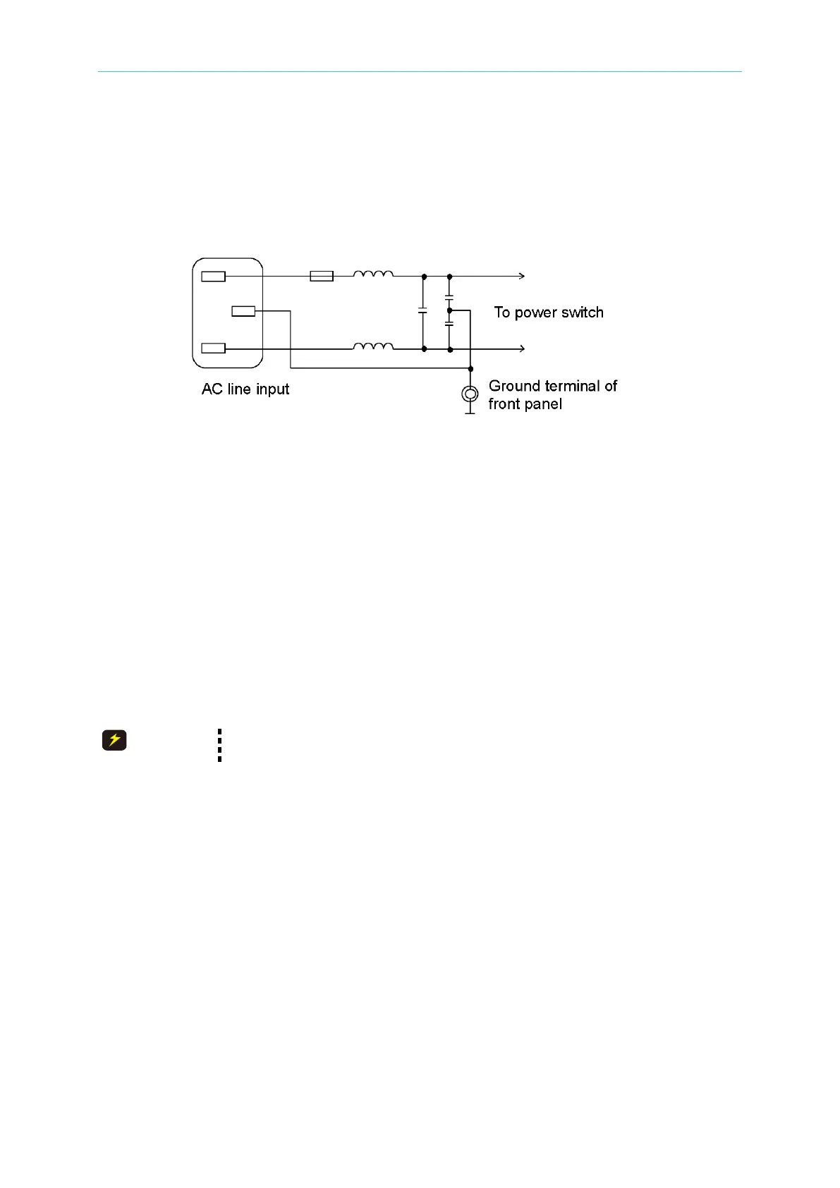 AC line input of rear panel, and connects GROUND terminal of front panel to earth.
