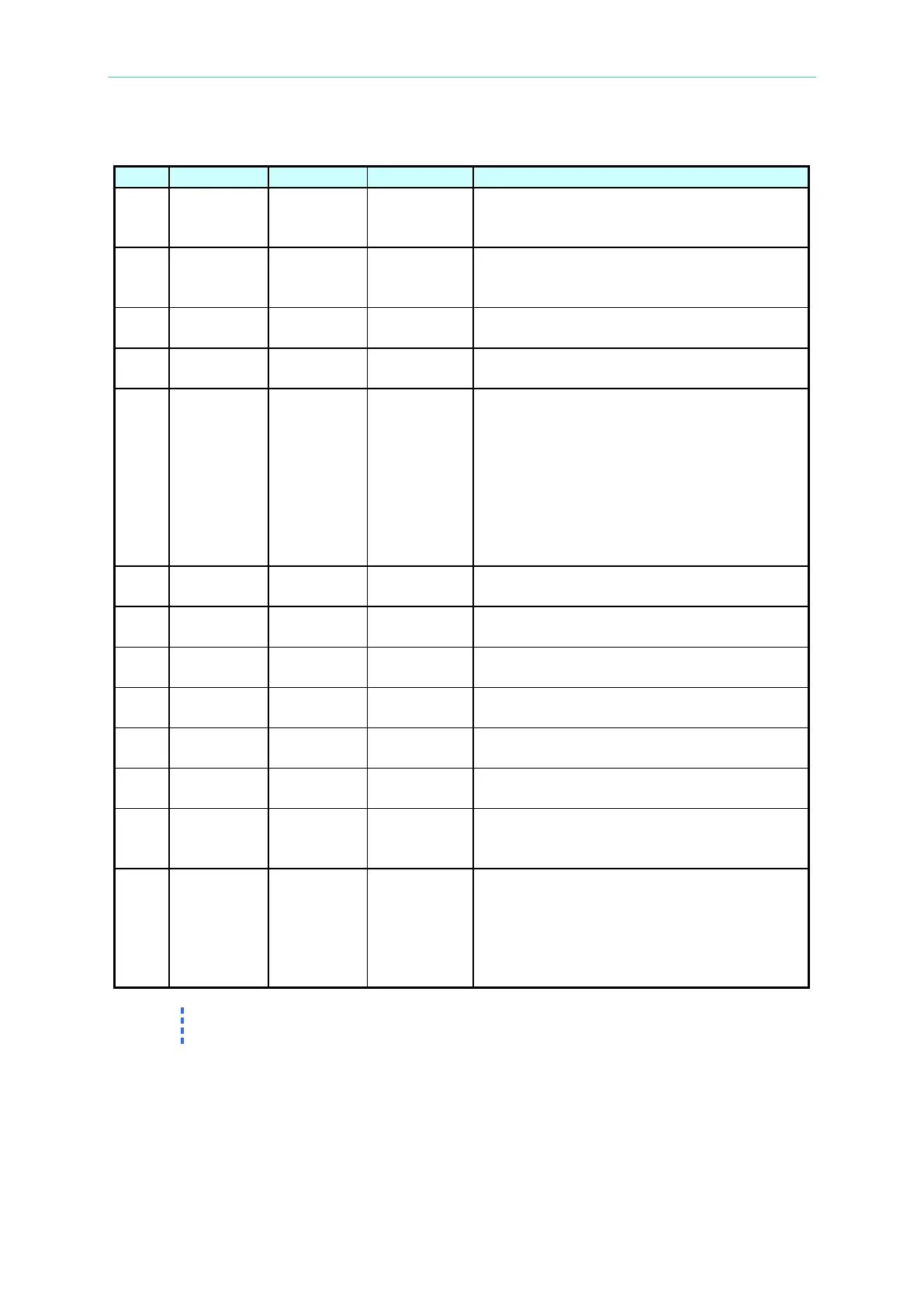 Preset parameter function description table: