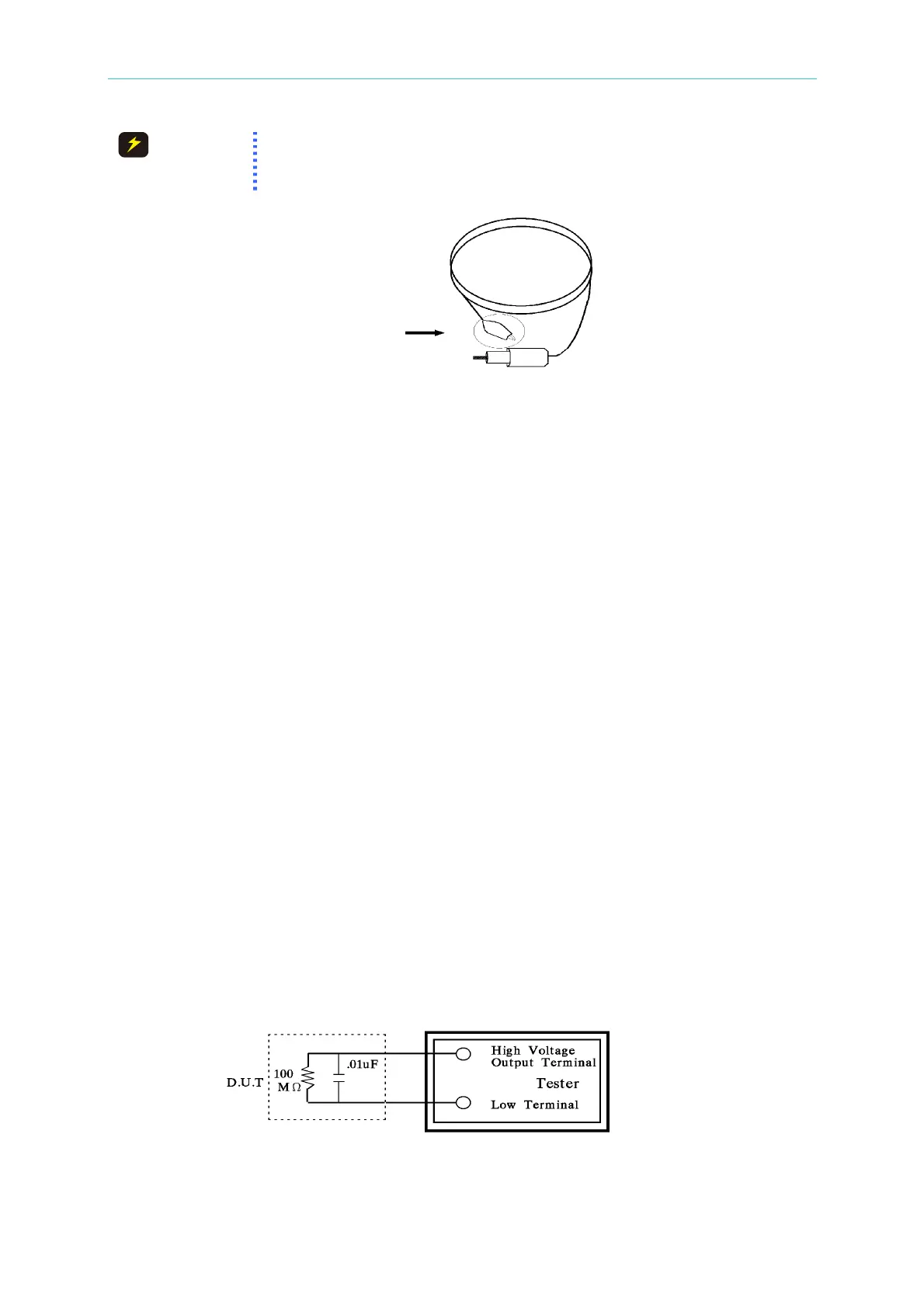 You may touch DUT, high voltage test cable or output terminal etc high voltage areas