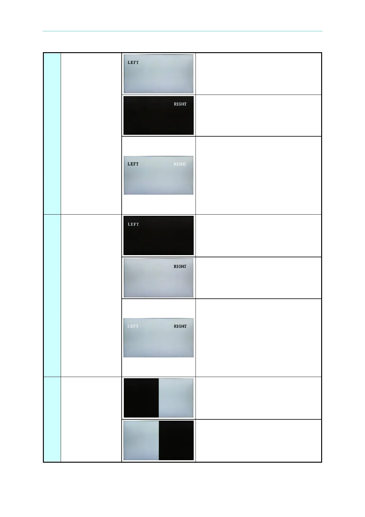 The pattern for left eye is a white screen