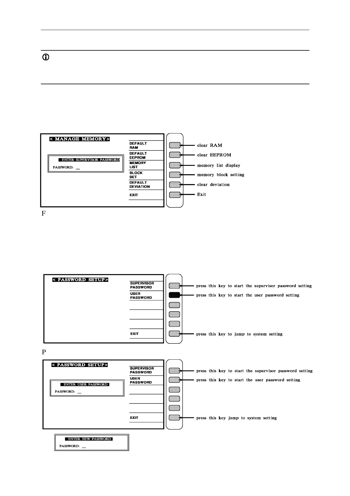 Press [USER PASSWORD] key to start the user password setting. The screen is as below: